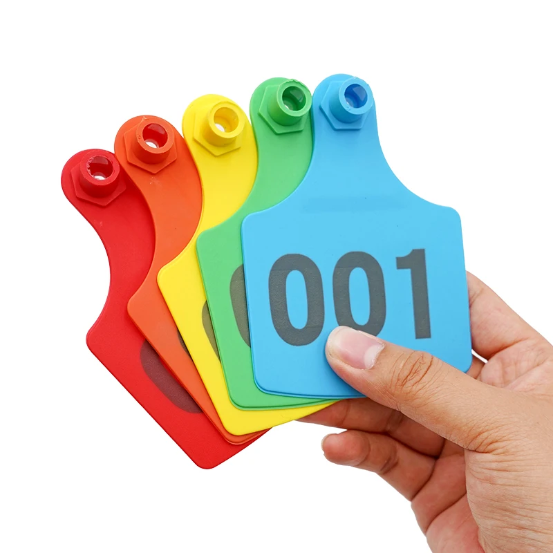 Tarjeta de identificación de etiqueta de oreja de vaca, 100 Uds., con palabra, señalización de animales, equipo de pendientes con cabeza de cobre y oreja de vaca de 105x75mm
