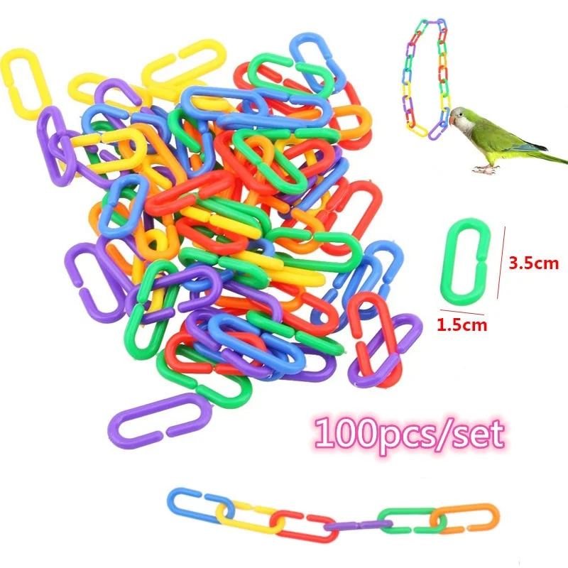 Compré una cadena para loros. La calidad es excelente, el plástico no tiene olor, los eslabones son brillantes y hermosos. Pero a mi loro no le gustó mi regalo, y ahora esta cadena está tirada sin usar. Espero que a tu loro le guste jugar con este juguete; al mío no le convenció. Pero el producto es excelente, lo recomiendo.