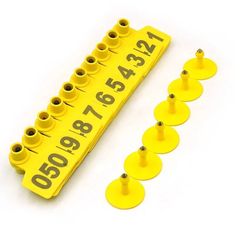 100 piezas ganado cerdo oveja oreja etiqueta signos con La palabra N. ° 1-500 oreja láser escribir cabeza de cobre pendientes Animal tarjeta de identificación