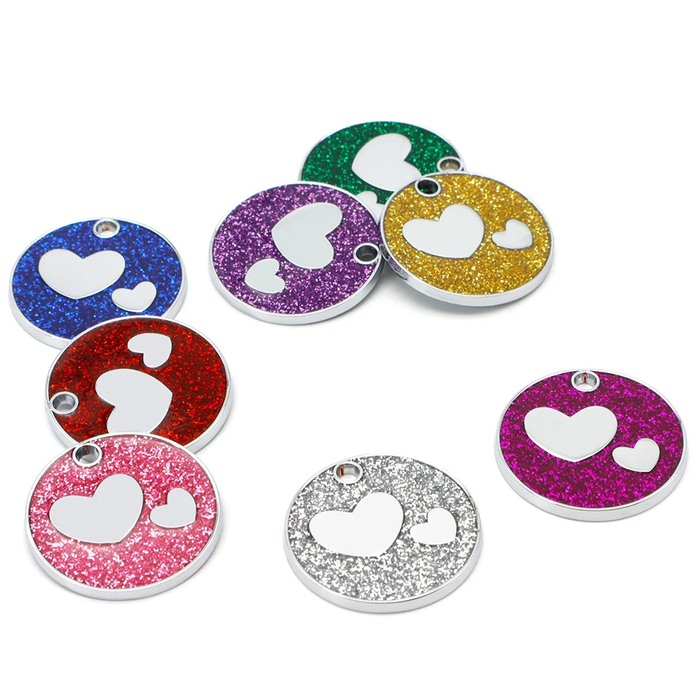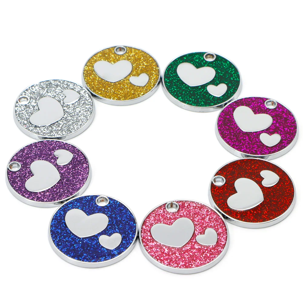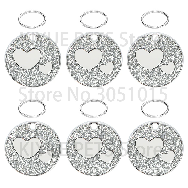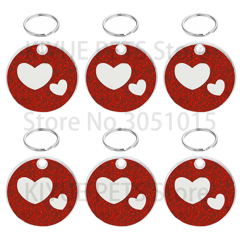 100 Uds. Etiquetas de identificación personalizadas para mascotas, nombre de mascota grabado, número de corazón, dirección, Collar de perro y gato, colgante redondo de Animal, collar de conejo y cachorro