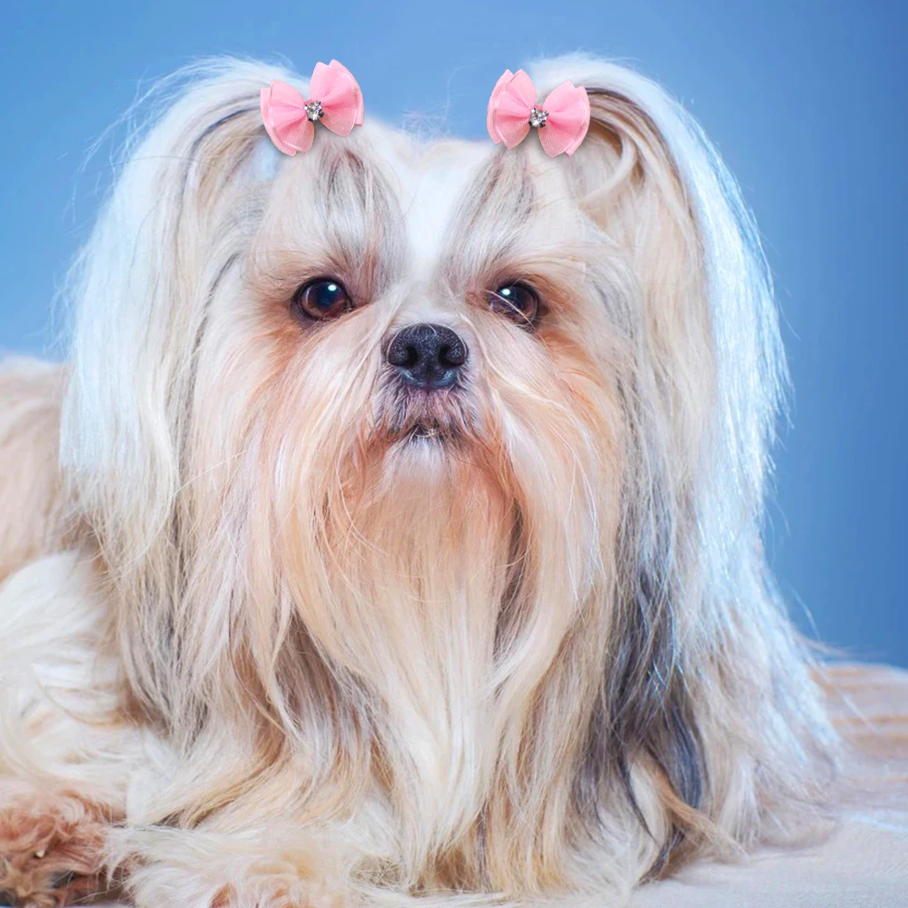 Description : 10pcs Pet hair bows Cute Chiffon bows Diamond Rubber bands dog bows dog hair accessories Pet grooming products Cute Gift