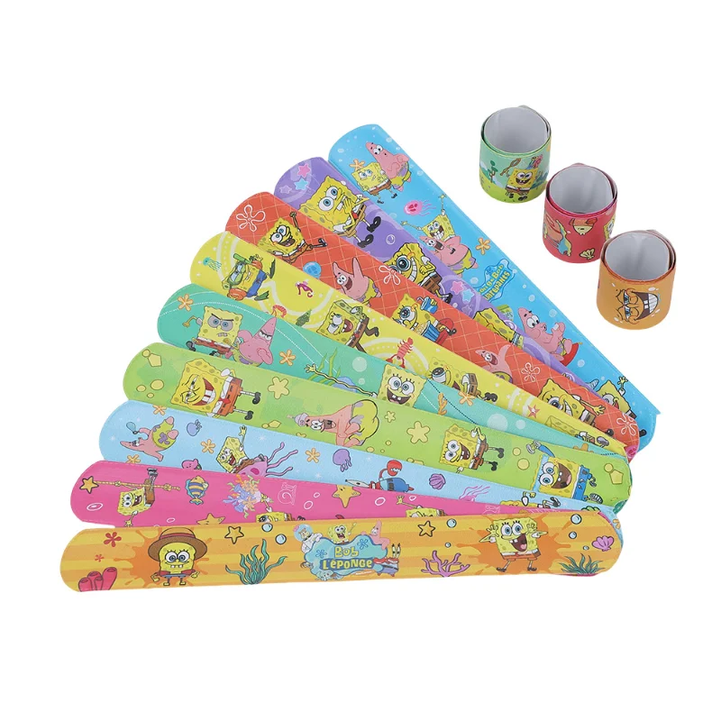 12 Uds. Pulseras de bofetada de Bob Esponja, correa para la muñeca, pulseras de bofetadas para niños, anillos para enganchar, juguete, suministros para fiestas, regalos de cumpleaños