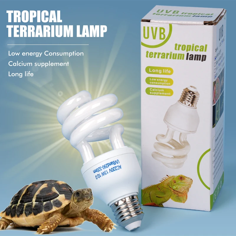 Lámparas calefactoras para reptiles de mascotas, 13W/26W, 220V, 5,0, lámpara de calor UVB, anfibio, vivario, tortuga, tortuga, serpiente, iluminación de ahorro de energía