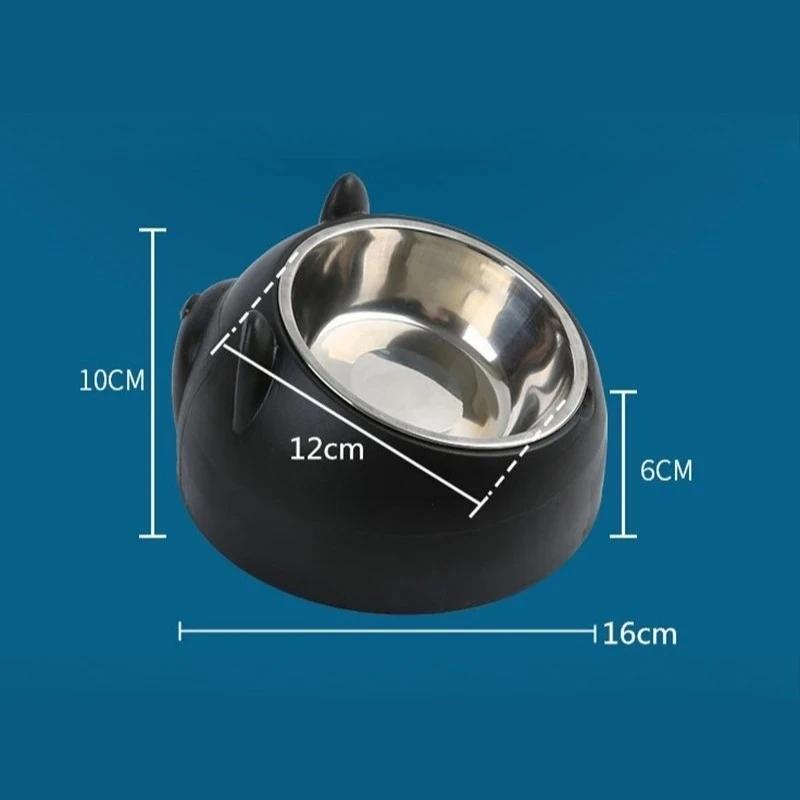 Cuenco para mascotas inclinado de acero inoxidable con osito de peluche: ¡alimentación segura, limpia y adorable!