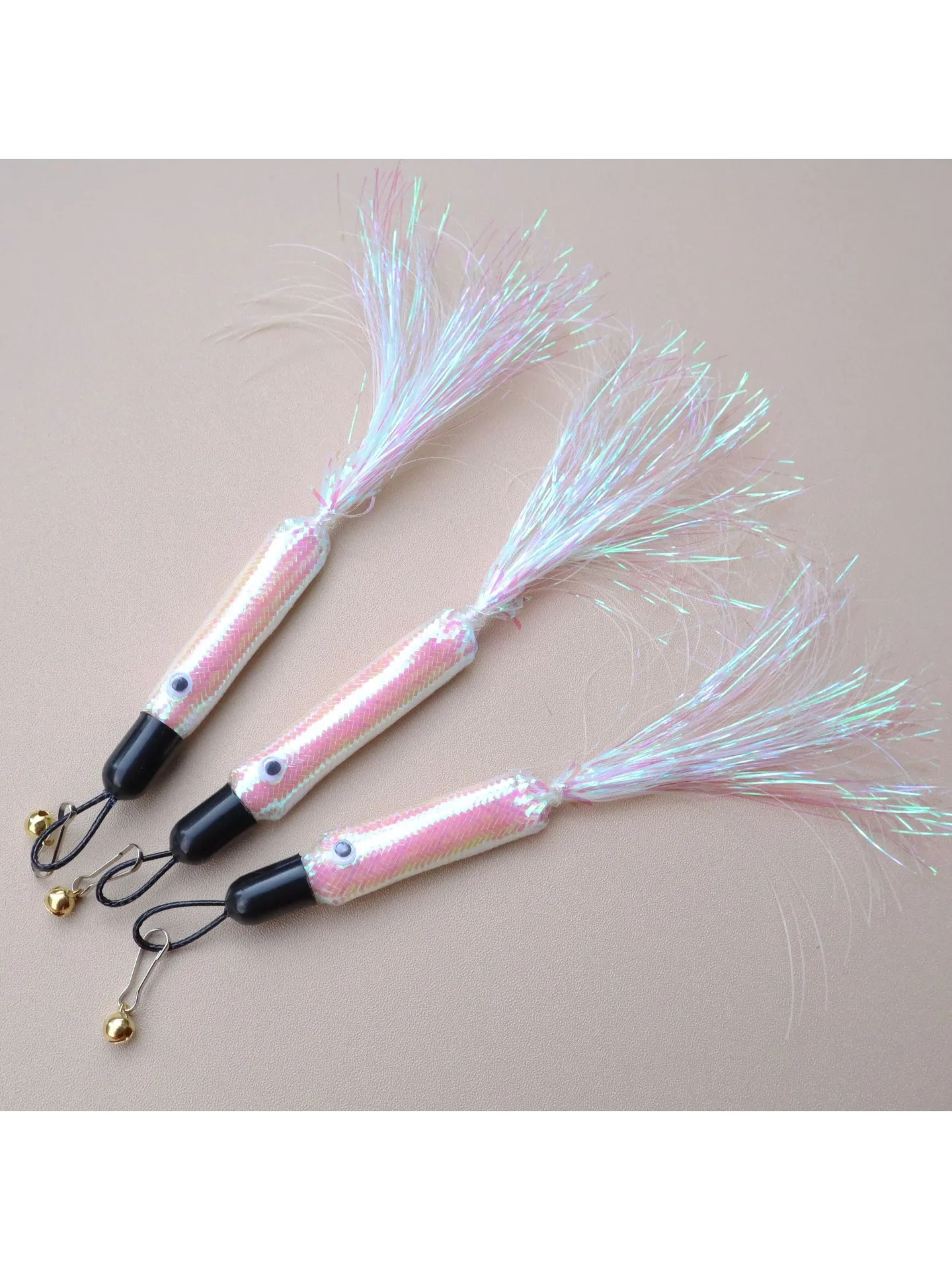 1pc/3pcs Tassel Fish Replacement Head for Simulated Small Silver Fish Cat Teaser Pet Toy Supplies