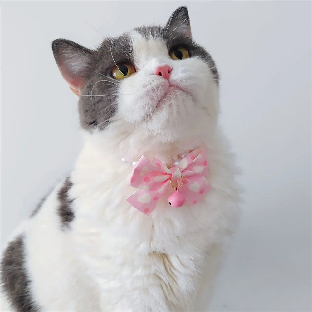 1pc Dog Collar Cute Adjustable Kitten Dog Bell Necklace Jewelry Pearl Bow Pet Collar Elegant Party Dress Collar Cat Accessories