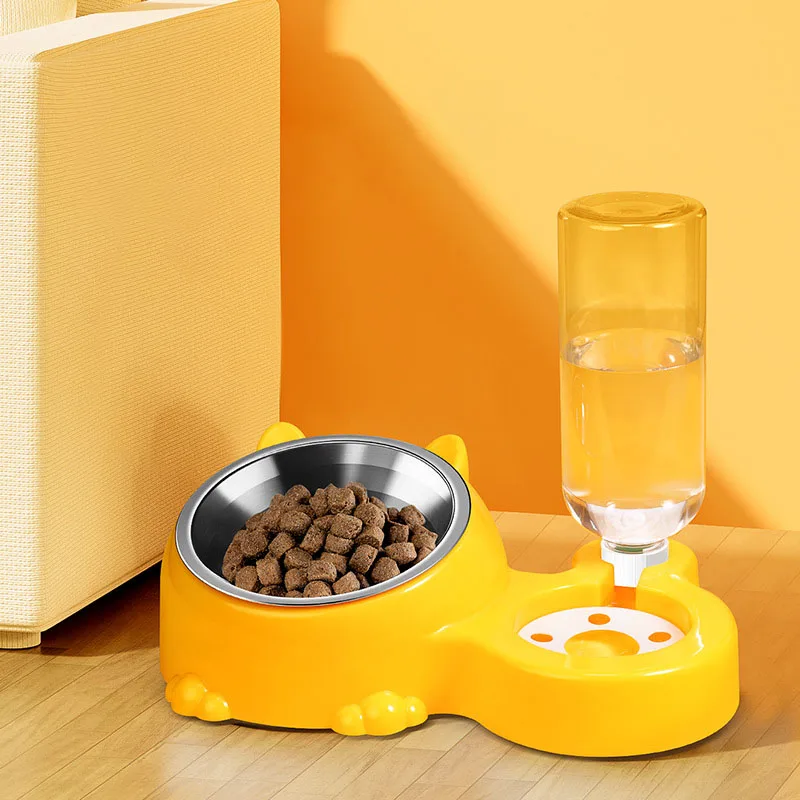 Cuenco 2 en 1 de acero inoxidable para mascotas, cuenco de comida y agua para gatitos, cachorros y gatos, cuenco de alimentación antiderrames,