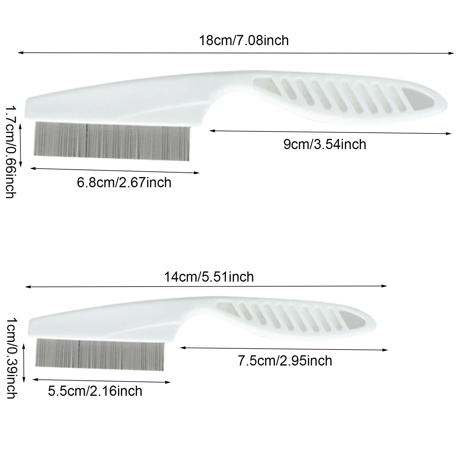 Specification: Material: Plastic + Stainless Steel Style: 1 Large Comb +1 Small Comb Product Size: Large: Total Length 18cm/7.08inch, Handle Length 9cm/3.54inch, Comb Tooth 6.8*1.7cm/2.67*0.66inch Small: Total Length 14cm/5.51inch, Handle Length 7.5cm/2.95inch, Comb Teeth 5.5*1cm/2.16*0.39inch