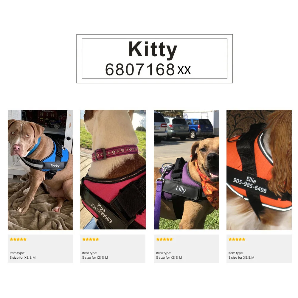 Etiqueta de identificación de arnés de mascota con nombre de Perro personalizado de 2 piezas, logotipo de nombre DIY, etiqueta de Collar de arnés de correa de pecho de perro personalizada