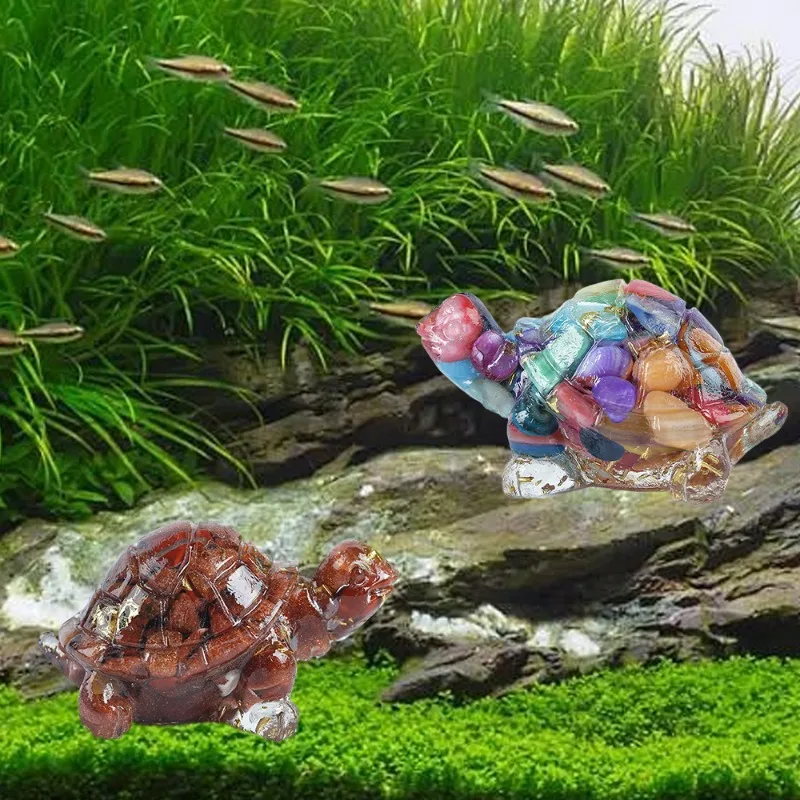2 unids/set de adornos de resina de cristal Artificial, bonita forma de tortuga, acuario, pecera, adorno de paisaje para el hogar, accesorios de decoración