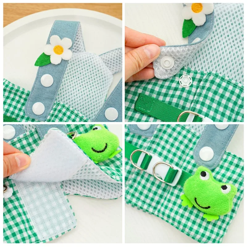 2 unids/set de arnés de pecho para mascotas en forma de rana + correa, arnés de pecho transpirable para mascotas, perros pequeños, gatos, Cosplay para caminar al aire libre