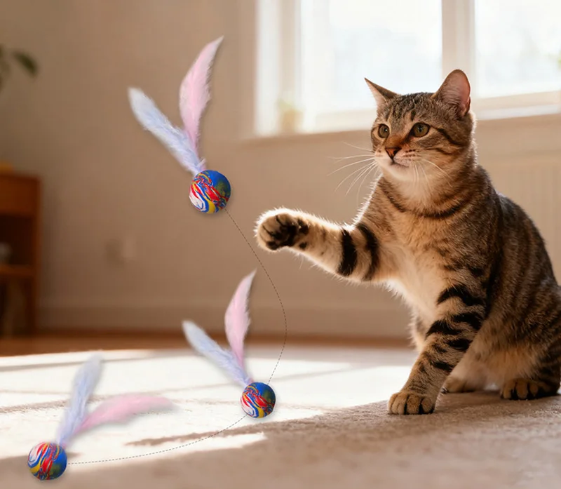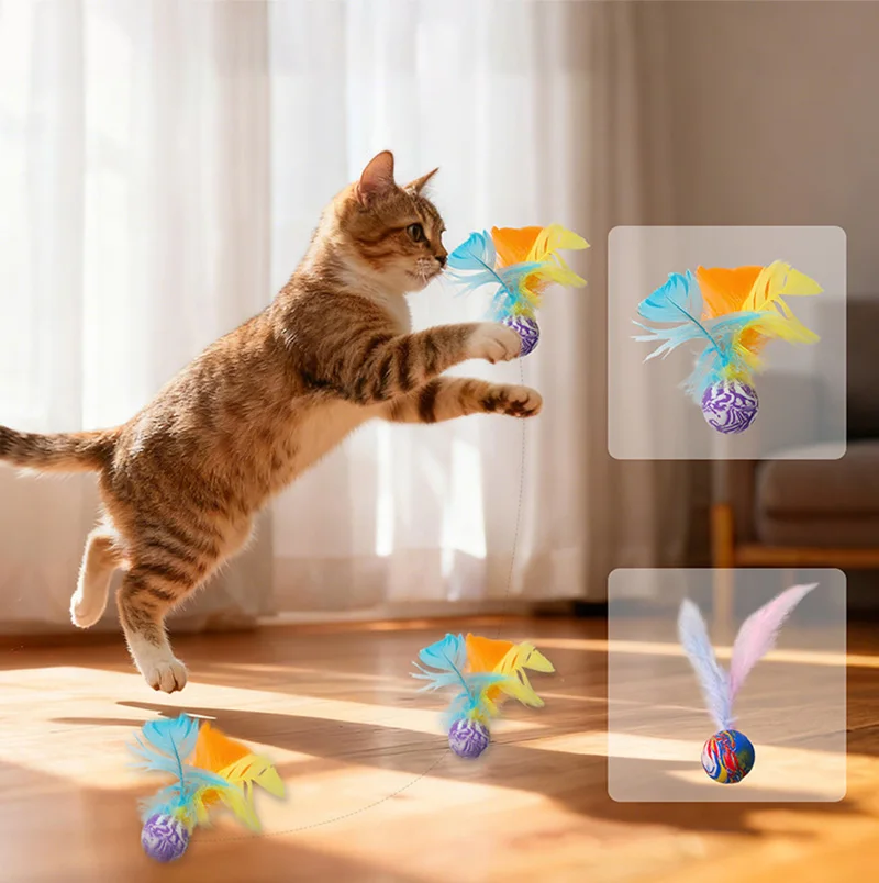Material: plumaColor: color aleatorioTamaño: como muestran las imágenesEl paquete incluye: 2 uds. De juguetes para gatos