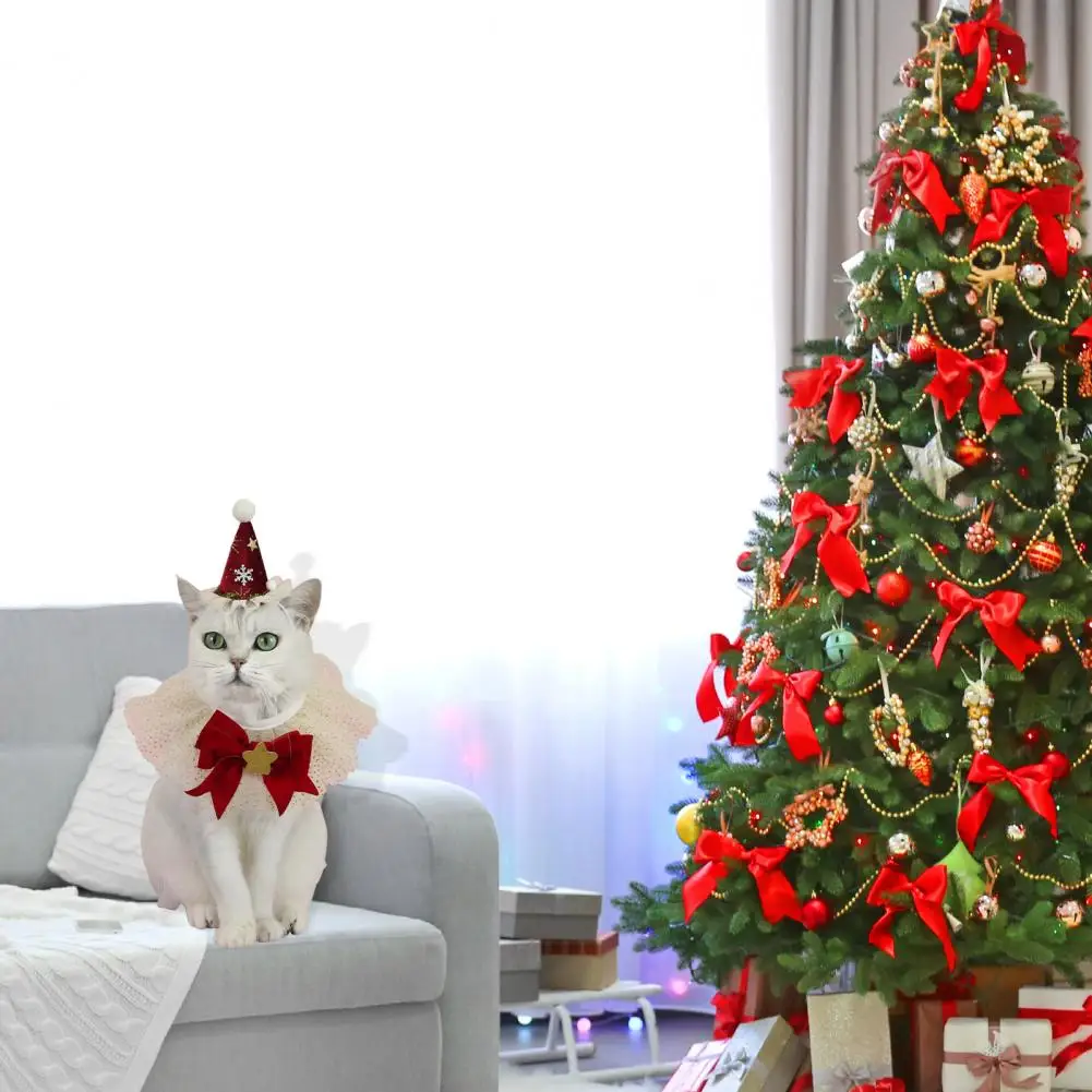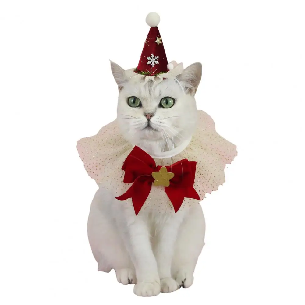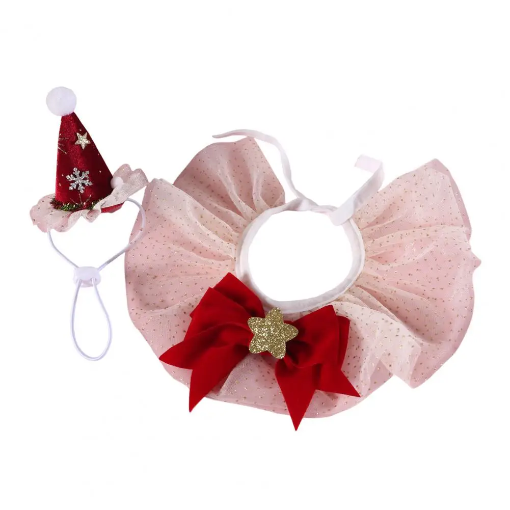 2 unids/set ropa de Navidad para mascotas diseño de estilo princesa fiestas de Navidad ajustable bufanda sombrero conjunto traje festivo para mascotas