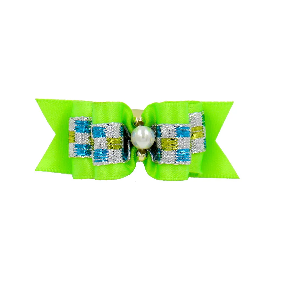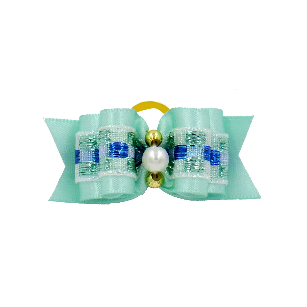 20/50/100 Uds/Lindo lazos para el pelo de perro perlas flores Topknot cuidado de mascotas perro bowkont mezcla colores lazos para el pelo de mascotas Topknot bandas de goma