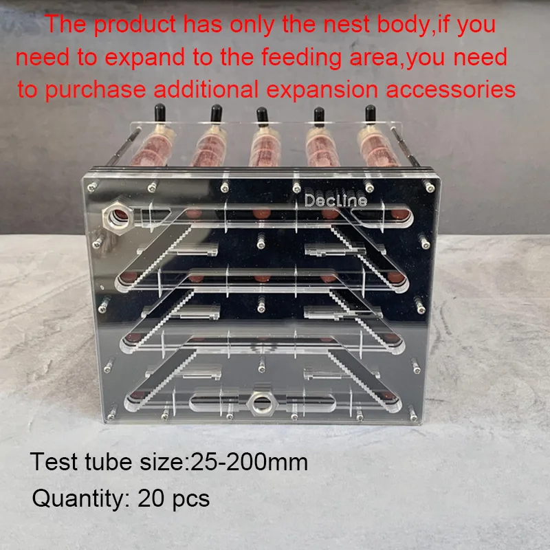 6.Gran espacio de almacenamiento, 20 tubos de ensayo de bambú de 25-200 mm, genera un reino de hormigas para usted