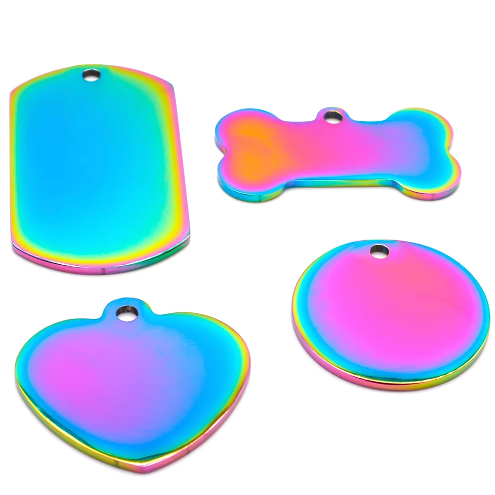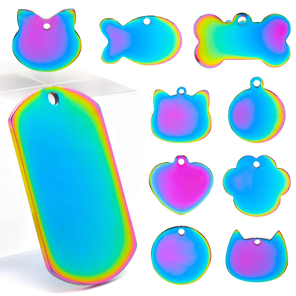 20Pcs Customized Personalized Color Stainless Steel Mixed With a Variety of Engravable Anti-Lost Key Ring Pendant Charms