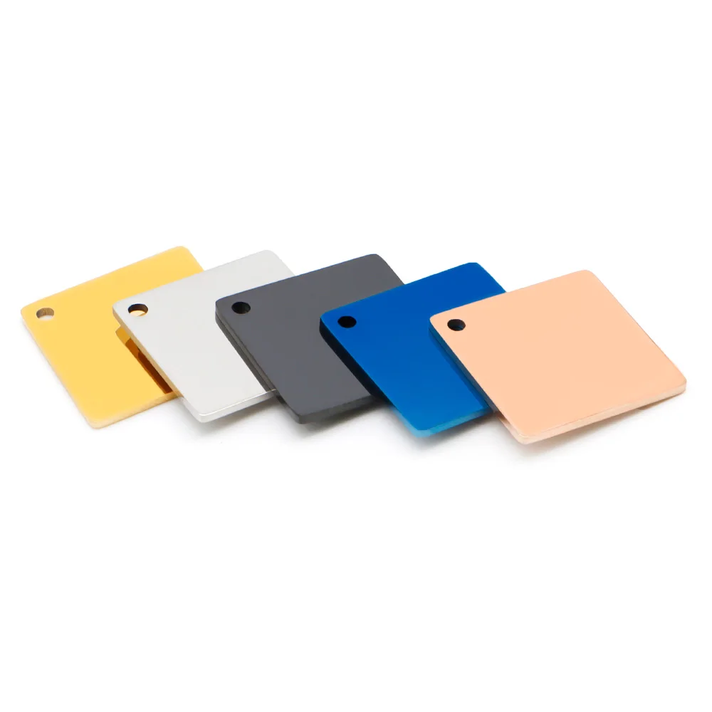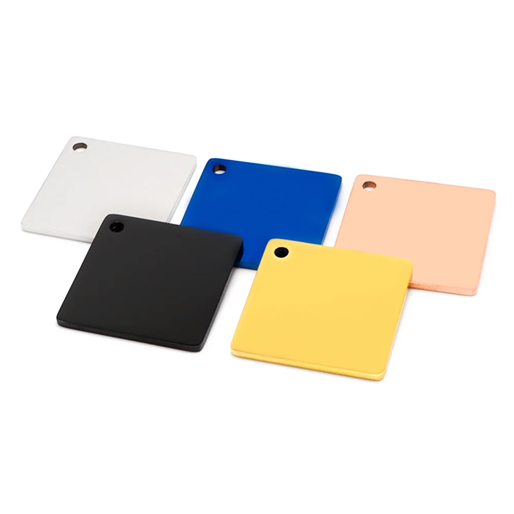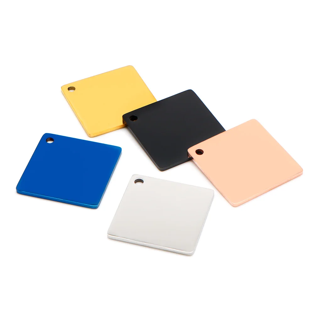 20 piezas de acero inoxidable cuadrado Multicolor en blanco ID Collar para mascotas etiqueta Identity llavero colgante perro personalidad collar accesorios