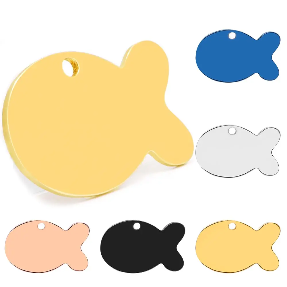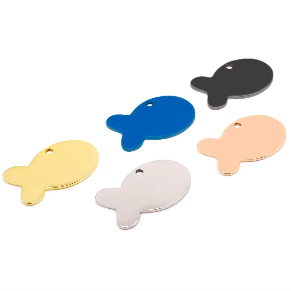 20PCS Pet Dog ID Tag Fish Shape Stainless Steel Personalized Engraved Name Phone Puppy Collar Pendant Keyring Accessories