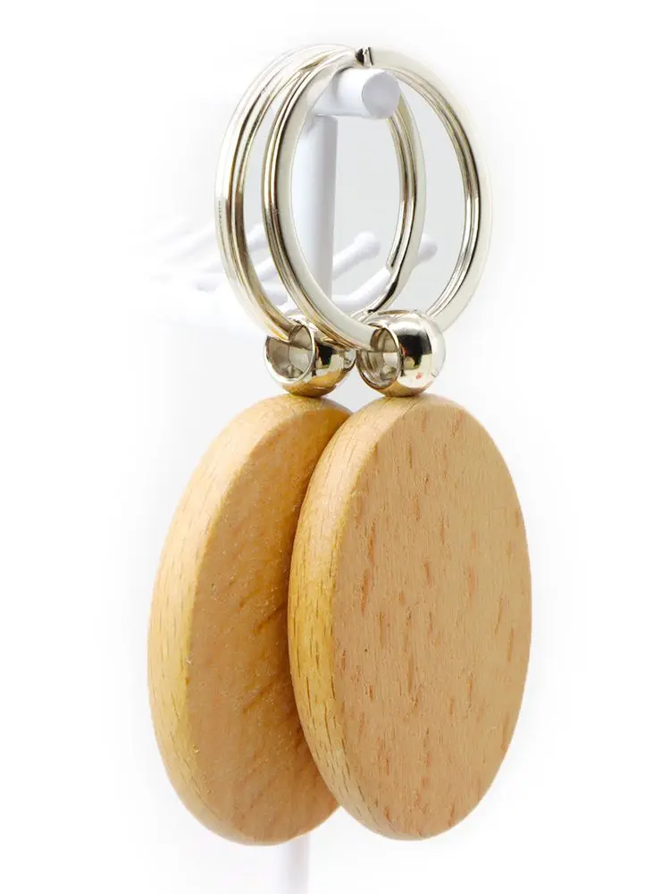 Etiquetas para perros con llavero ovalado en blanco de madera elipse