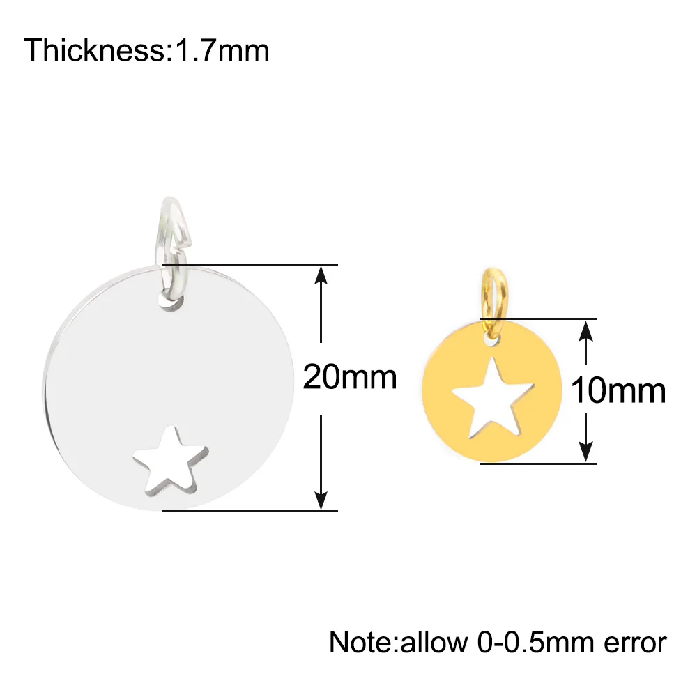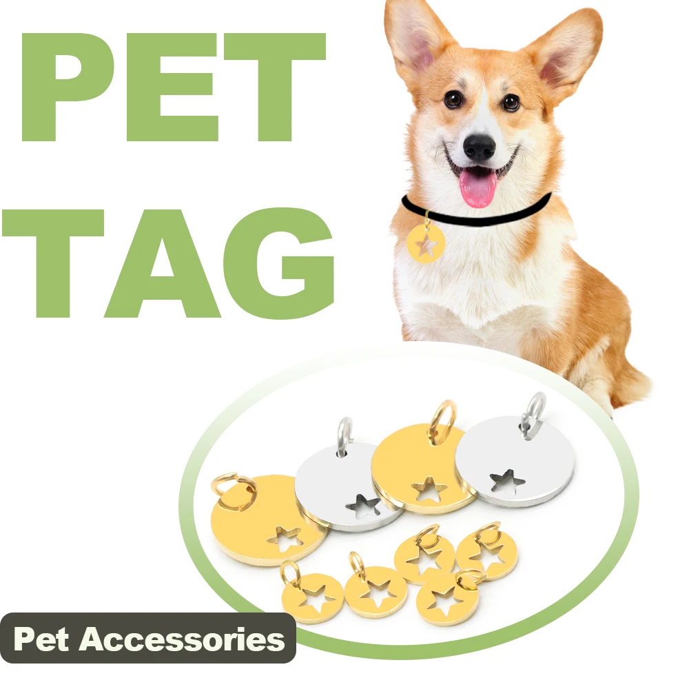 Collar redondo con estrella recortado de cinco puntas para mascota, logotipo de identificación de identidad, etiqueta de Metal, decoración de joyería personalizada, regalo, 20 Uds.