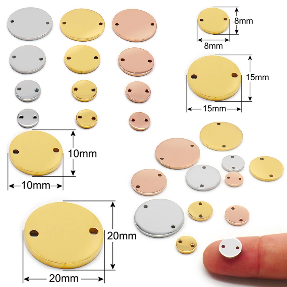 20PCS Wholesale Stainless Steel Metal Round Accessories With Double Holes Pet Ornaments Personality Fashion Jewelry Accessories