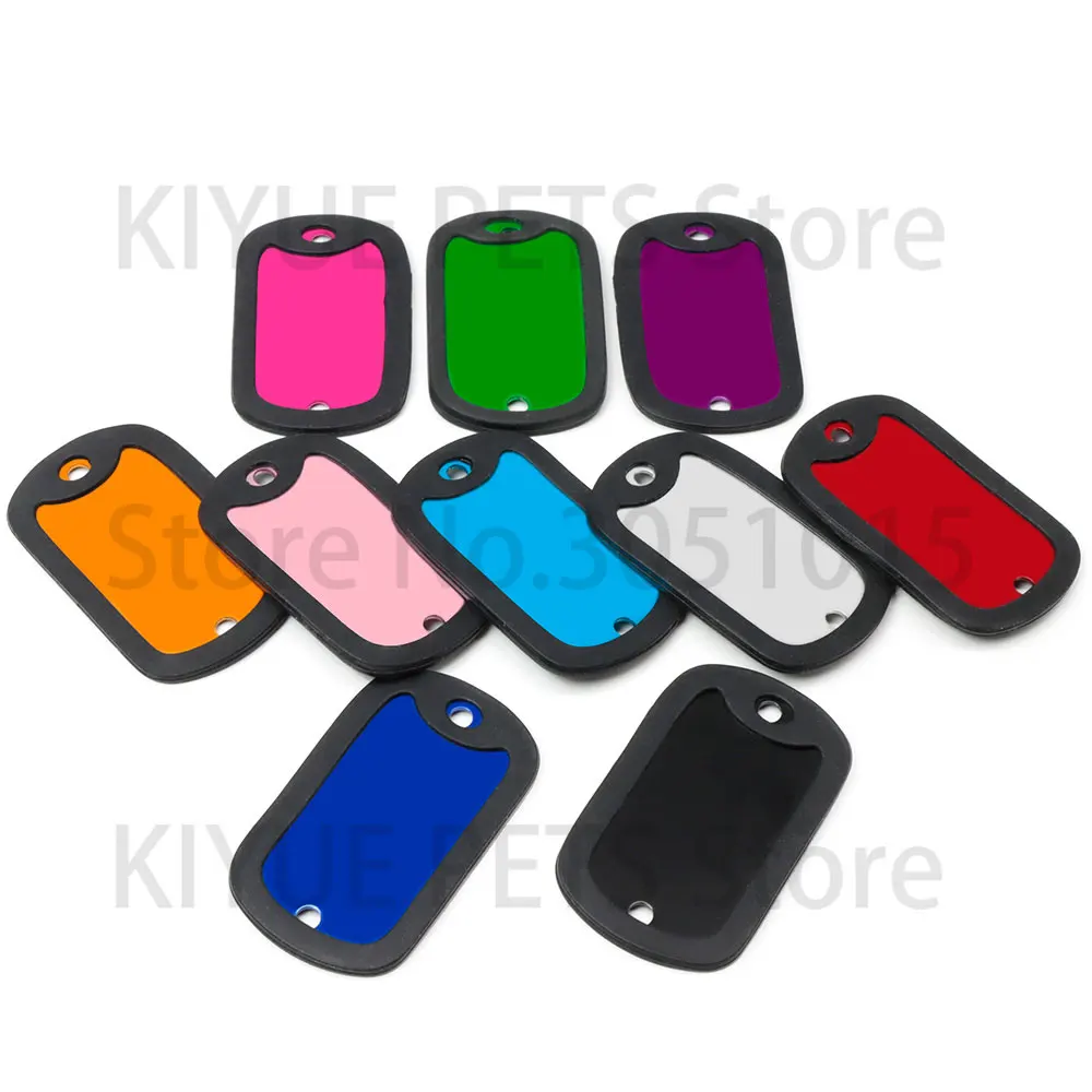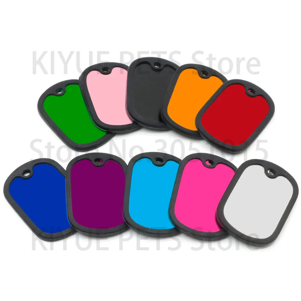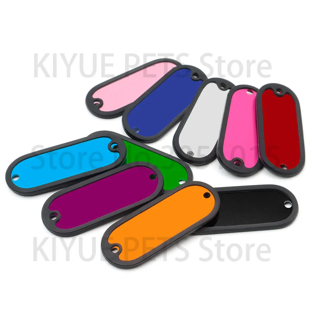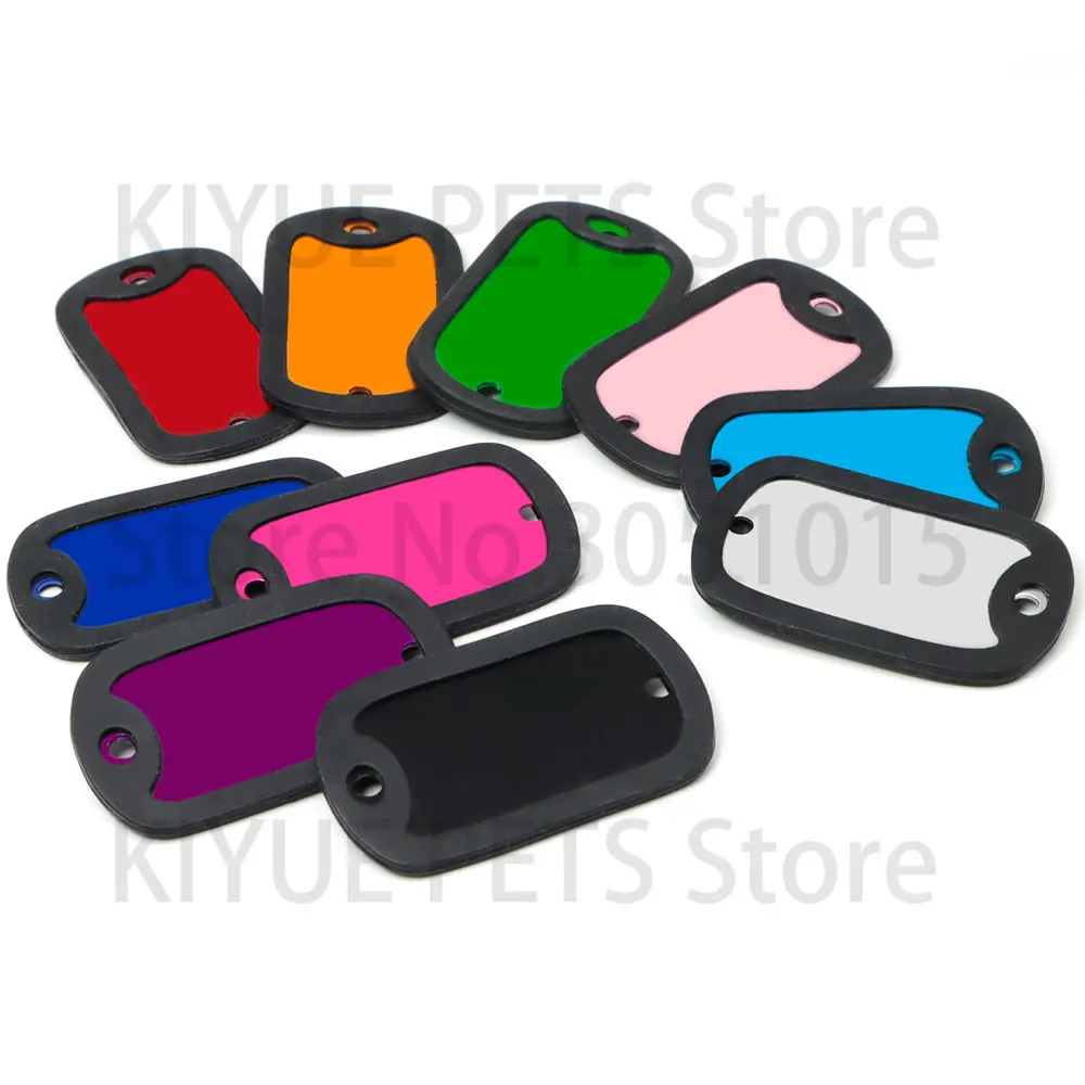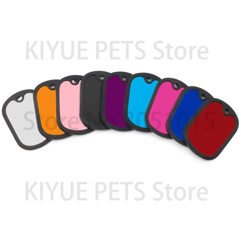 20 unids/lote personalizado perro identificación etiqueta en blanco silenciador negro placa de identificación de gato accesorios de placa antipérdida de goma