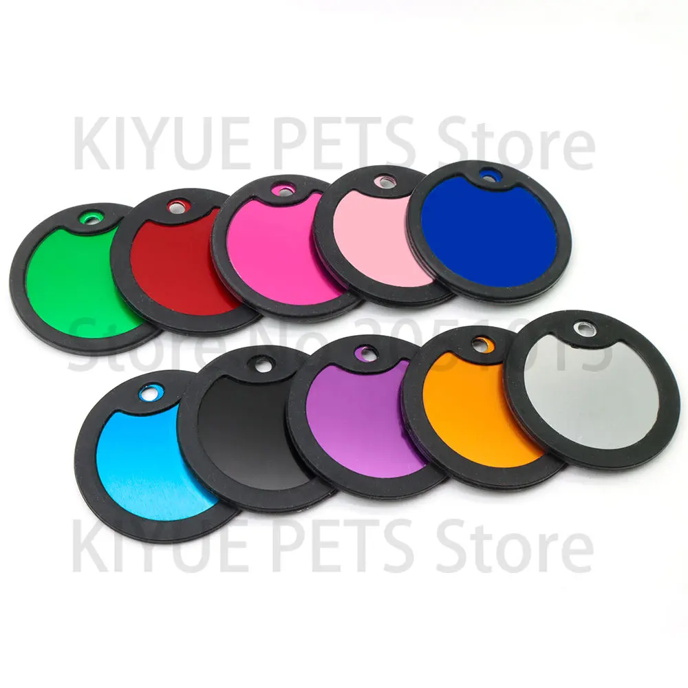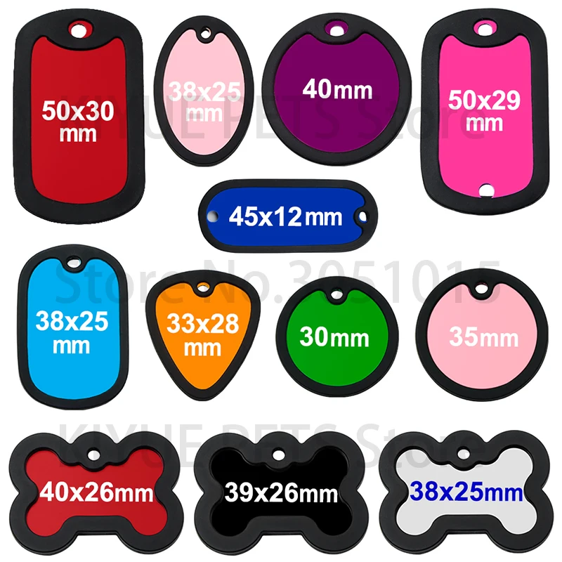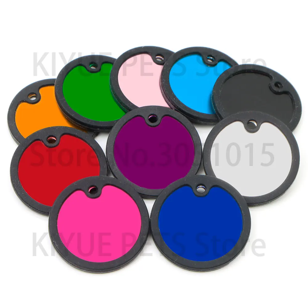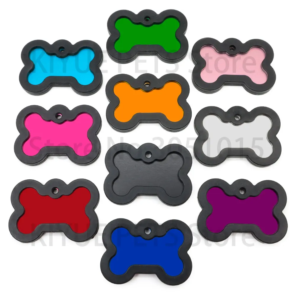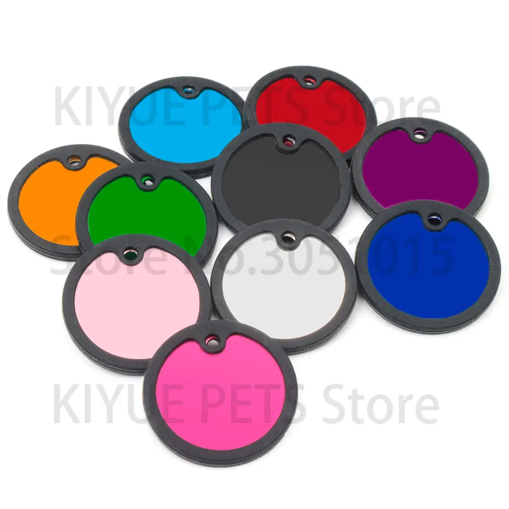 20 unids/lote personalizado perro identificación etiqueta en blanco silenciador negro placa de identificación de gato accesorios de placa antipérdida de goma