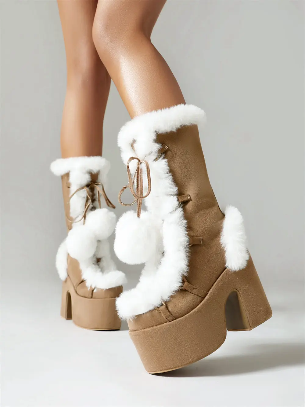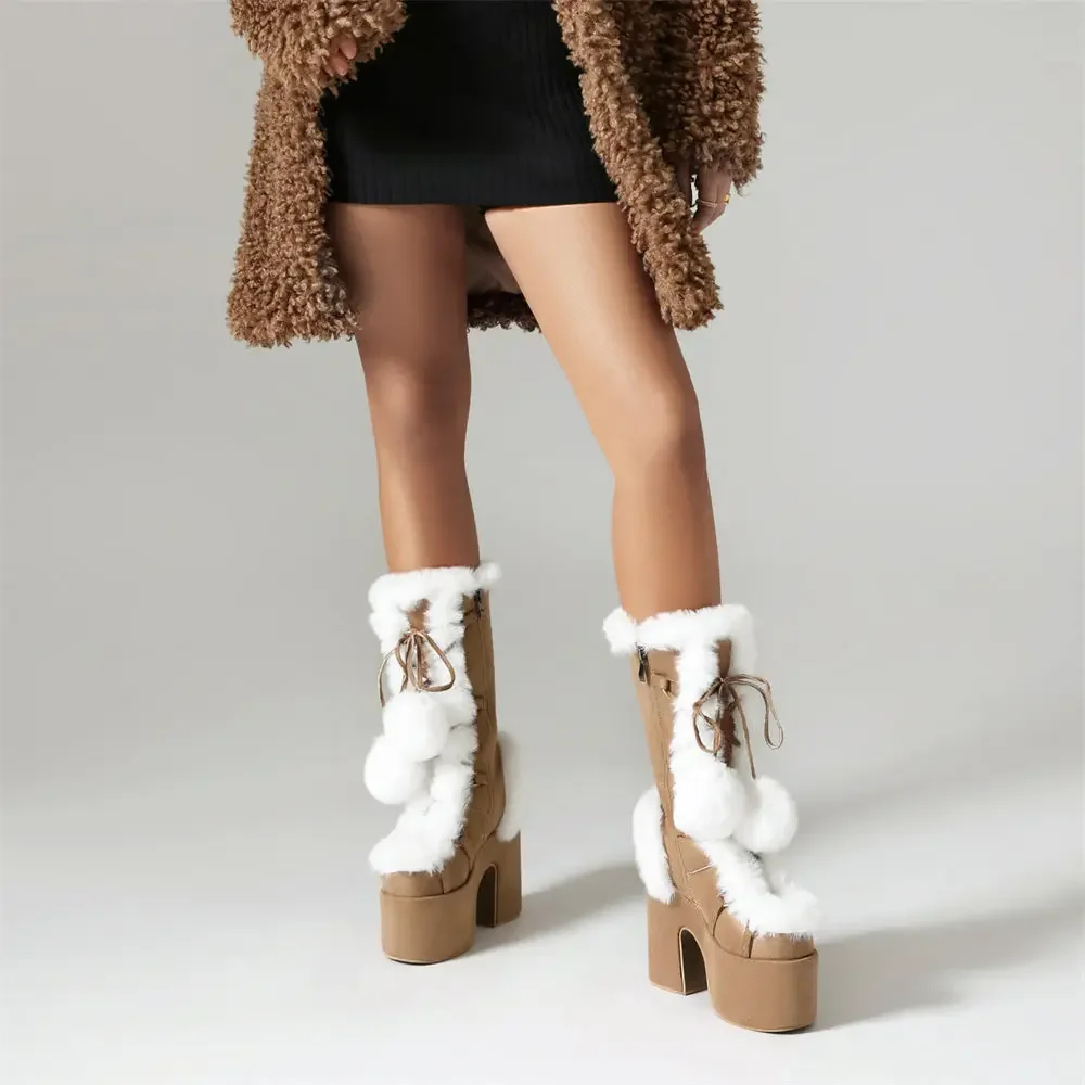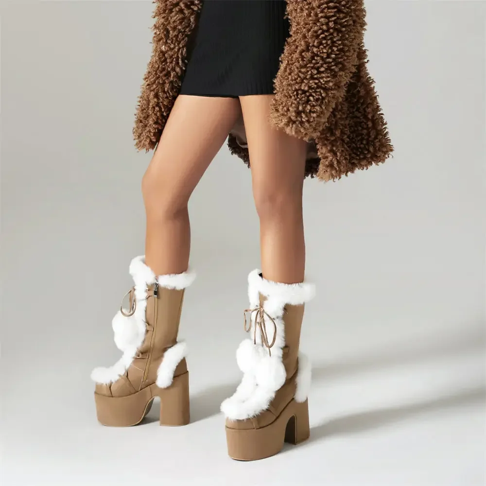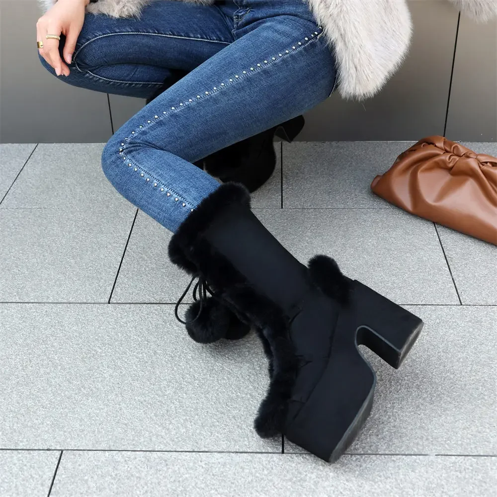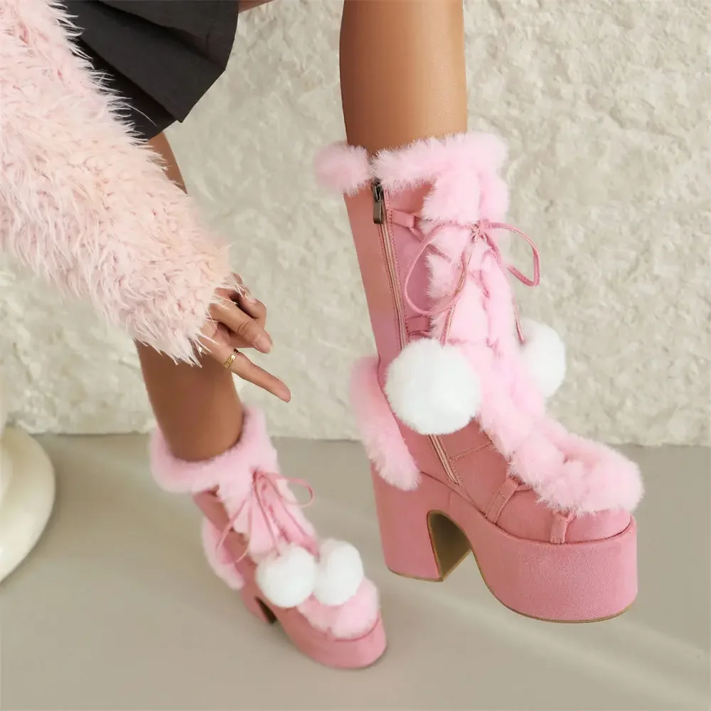 2025 invierno negro gótico talla grande 43 botas de plataforma gruesas mujeres Y2k bloque rosa tacones altos botas a media pantorrilla zapatos