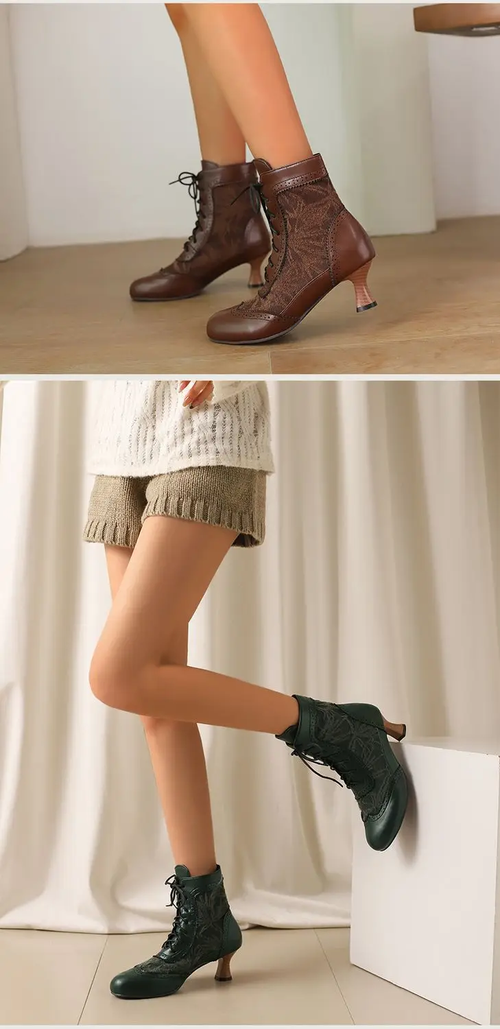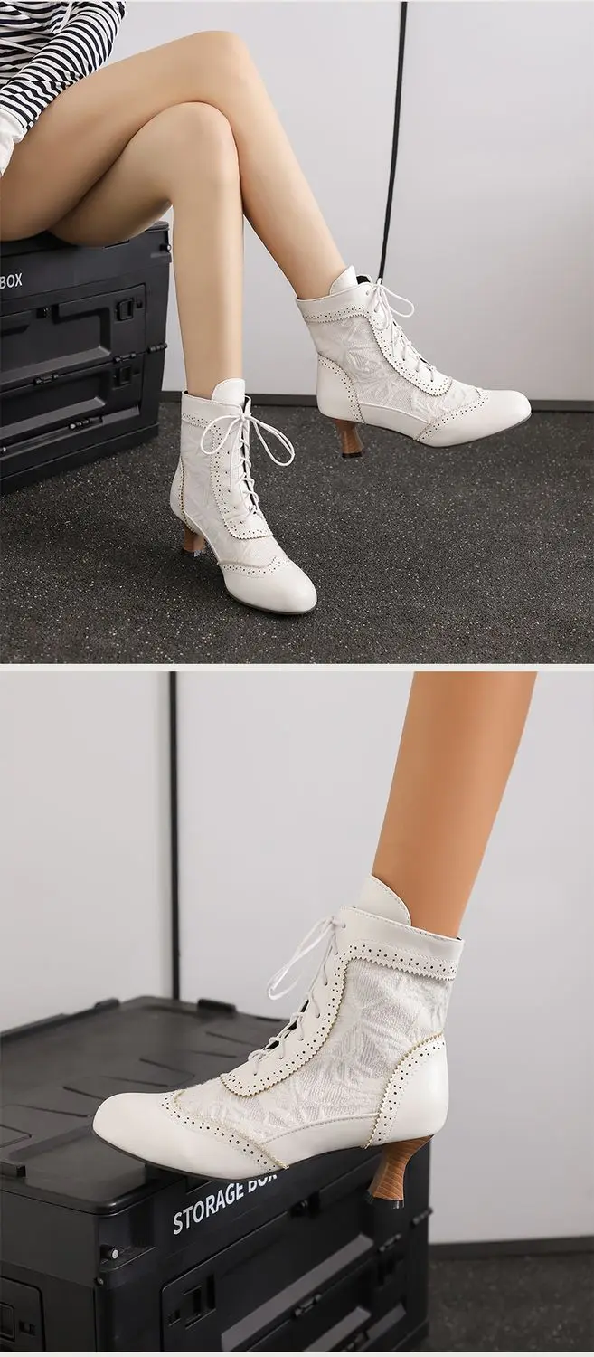 2025 invierno nueva moda victoriana puntiaguda botines para mujer encaje costura Punk encaje hasta tacón bajo zapatos de talla grande