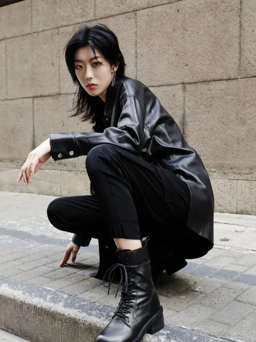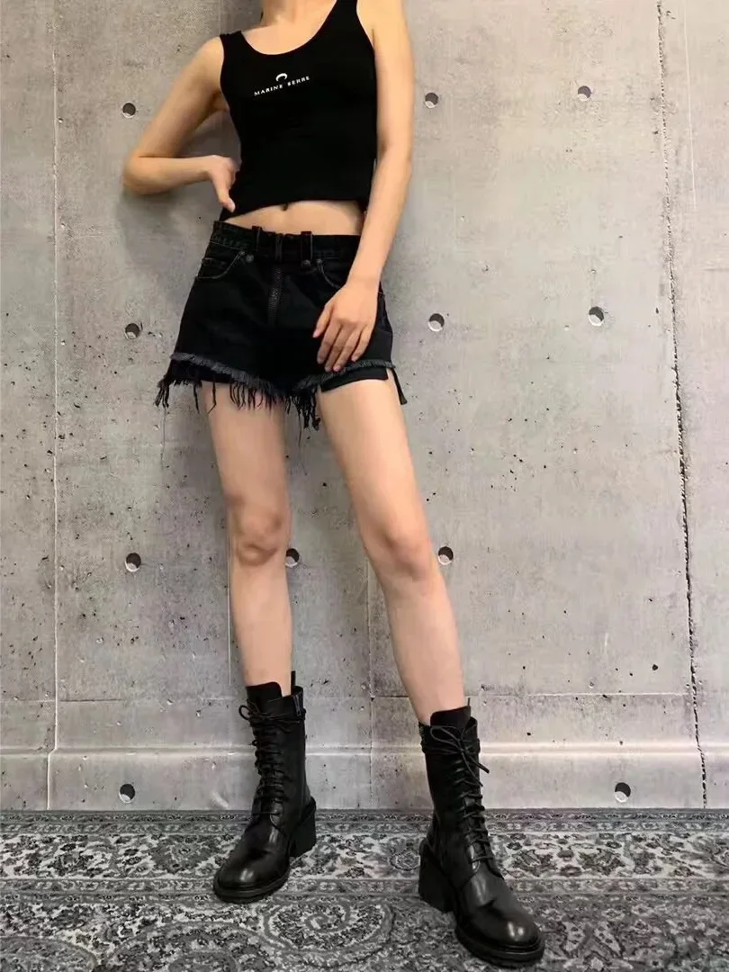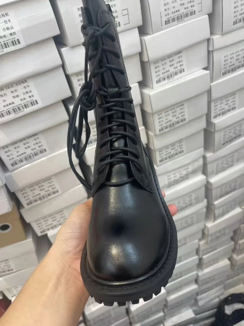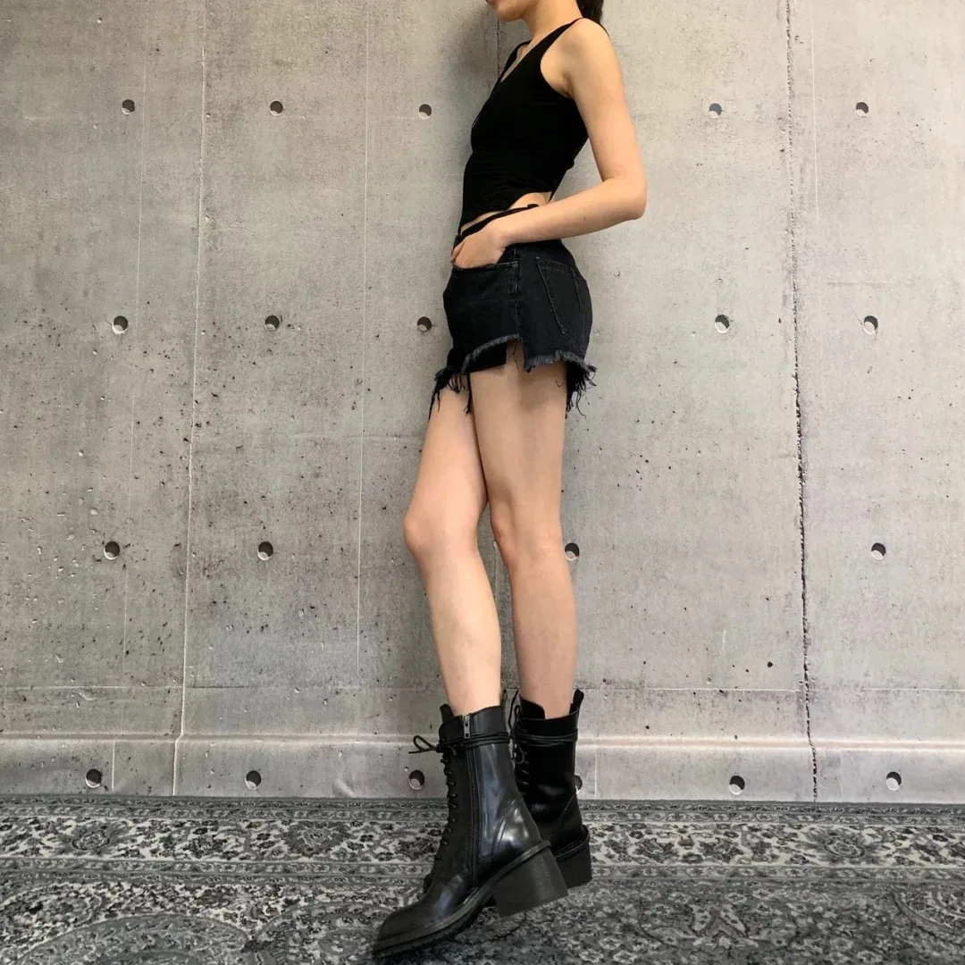 2025 marca de invierno de alta calidad Chic Cool botines de mujer moda negro tacones de bloque con cordones cremallera motocicletas botas zapatos