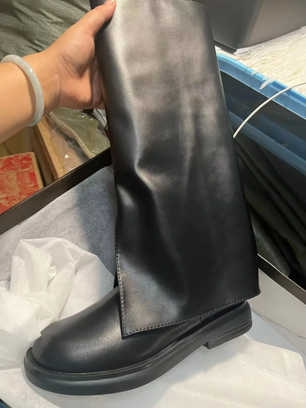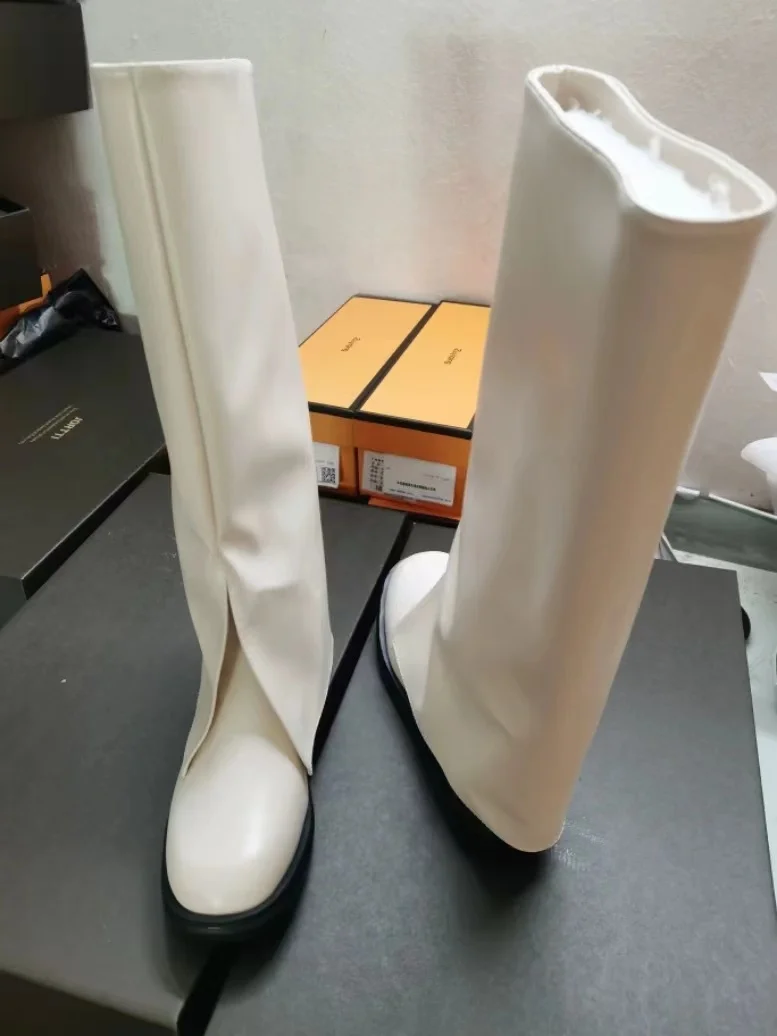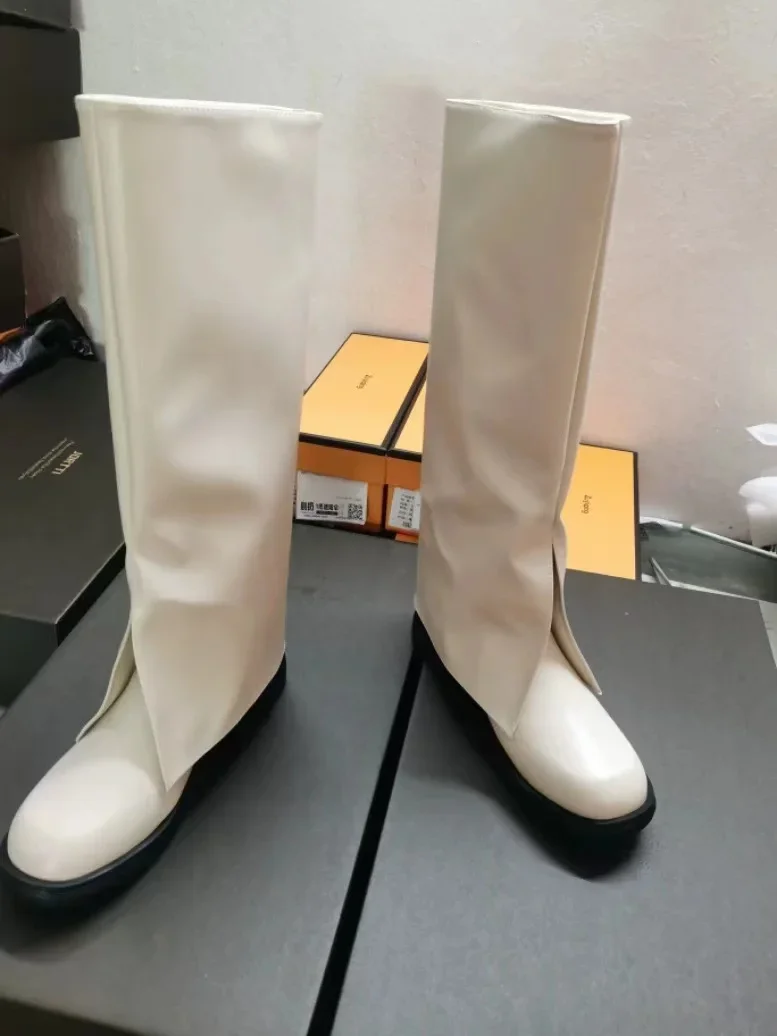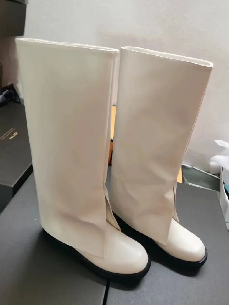 2025 moda alta gran calidad cómodo caminar Vintage negro Slip on zapatos de mujer cubrir pantalones botas para mujer