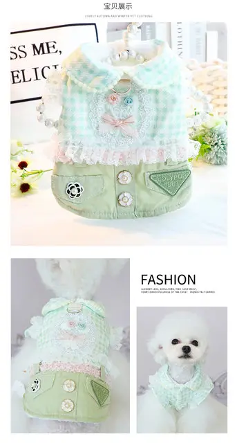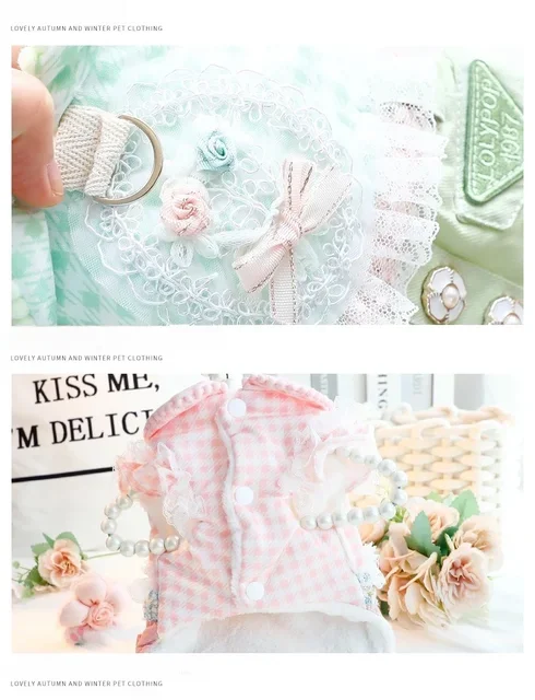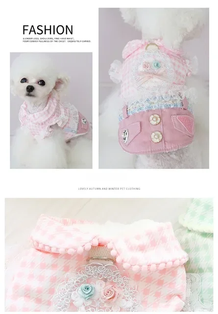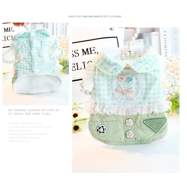 2025 nueva falda gruesa de princesa Otoño Invierno para perros pequeños gatos diseño vaquero a cuadros, ropa cálida para mascotas