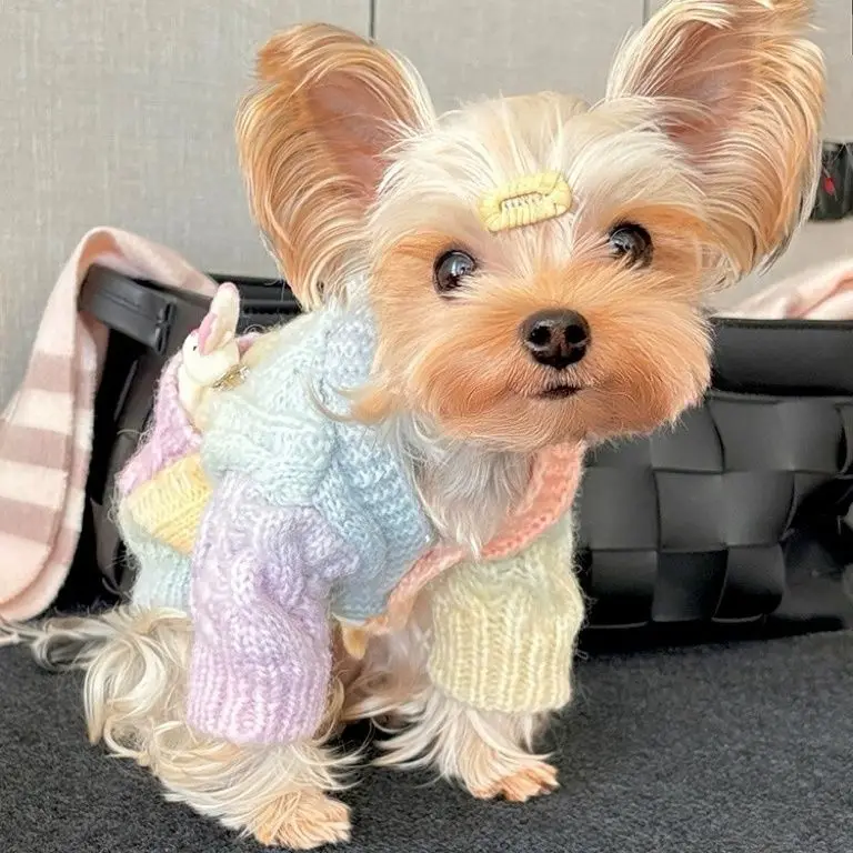 2025 nueva llegada lindo suéter con estampado colorido para perros pequeños ropa de abrigo ropa de moda para perros