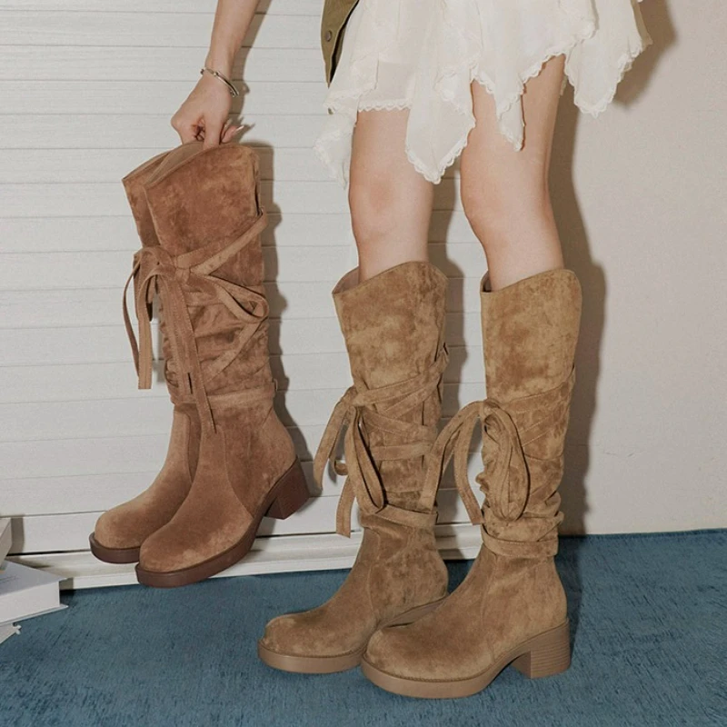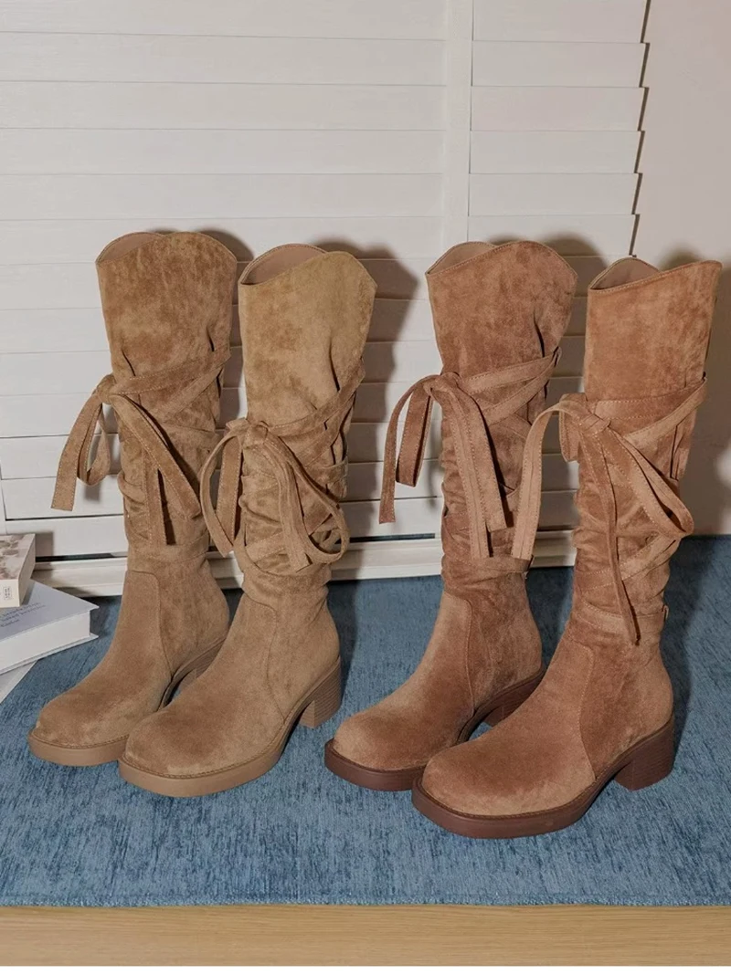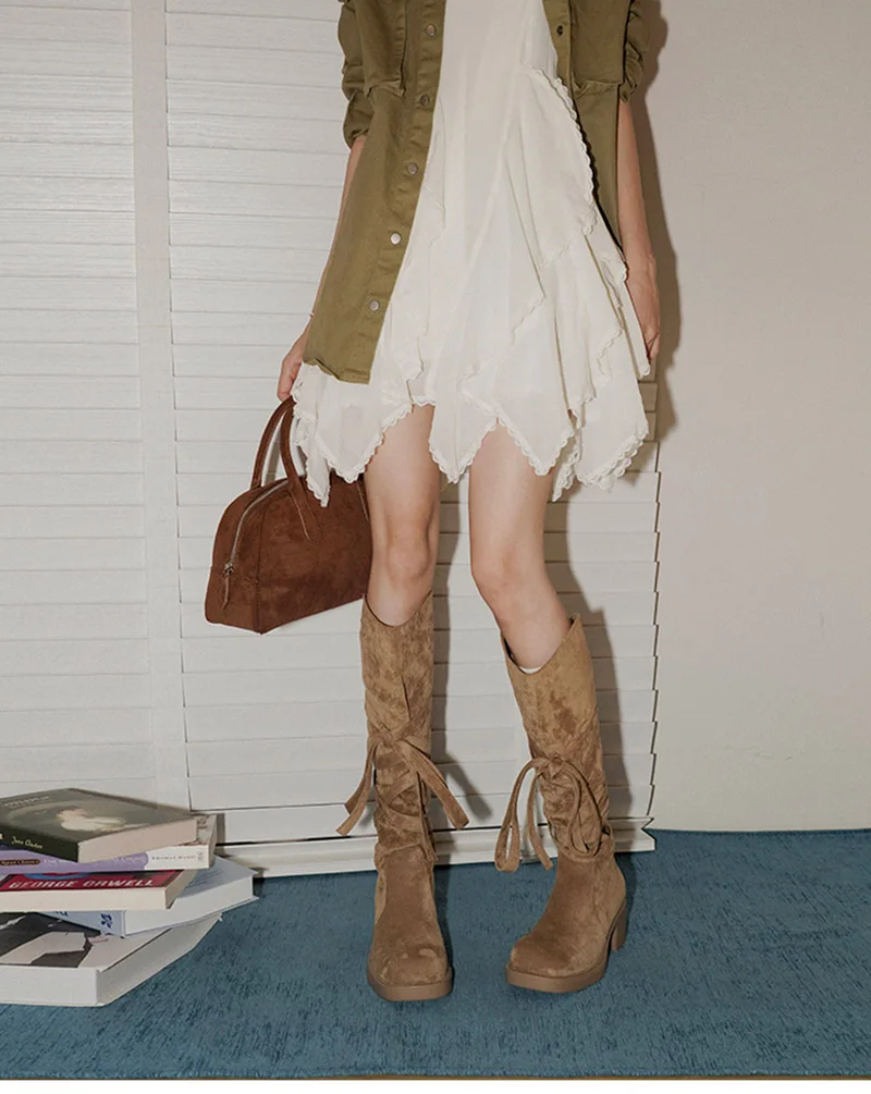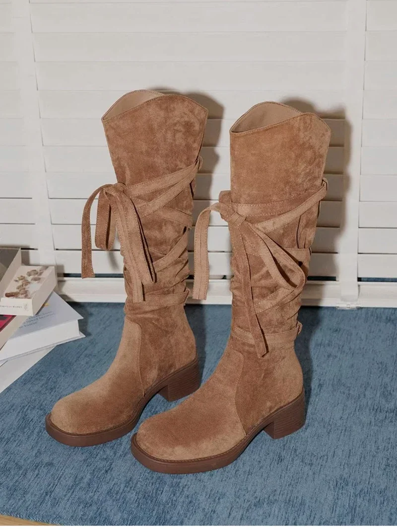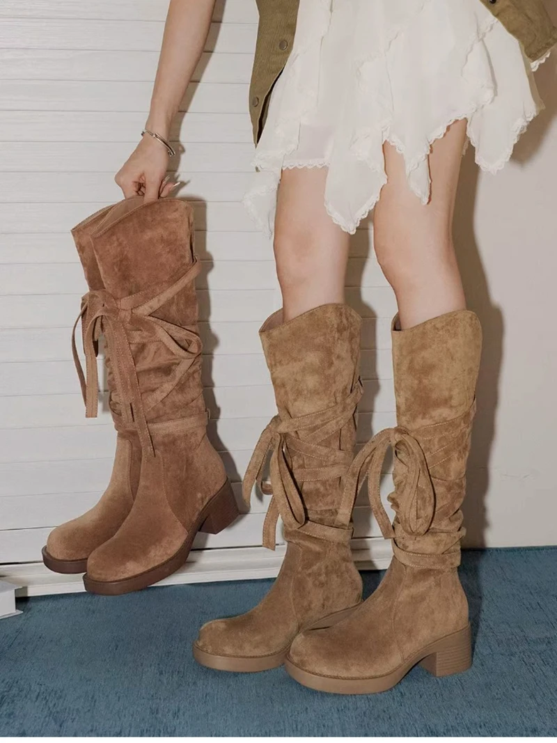 2025 nuevas Botas De vaquero del oeste con borlas Vintage para Mujer, Botas largas informales De tacón grueso para Mujer, Zapatos De Mujer