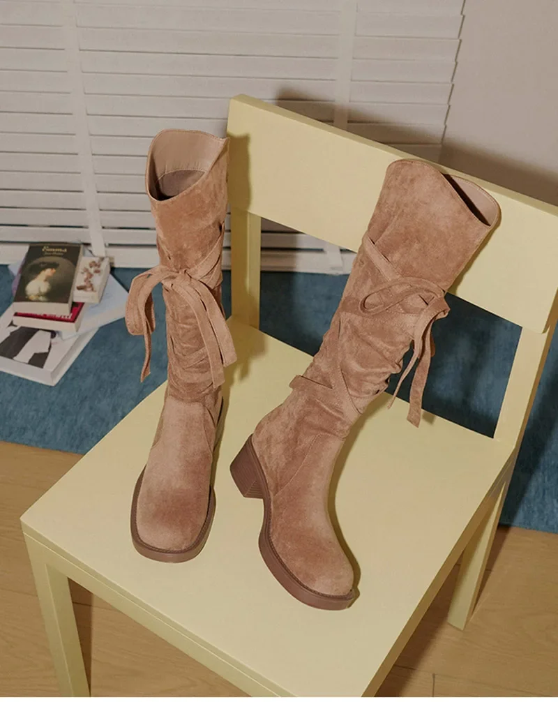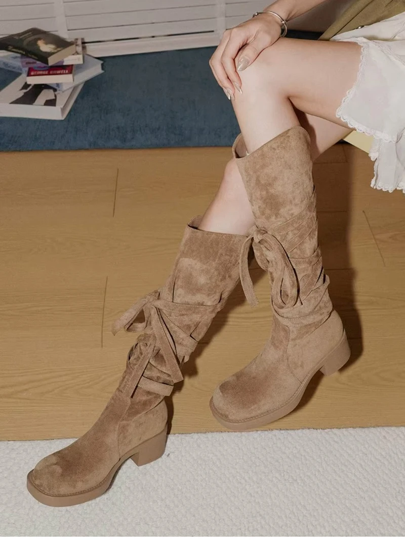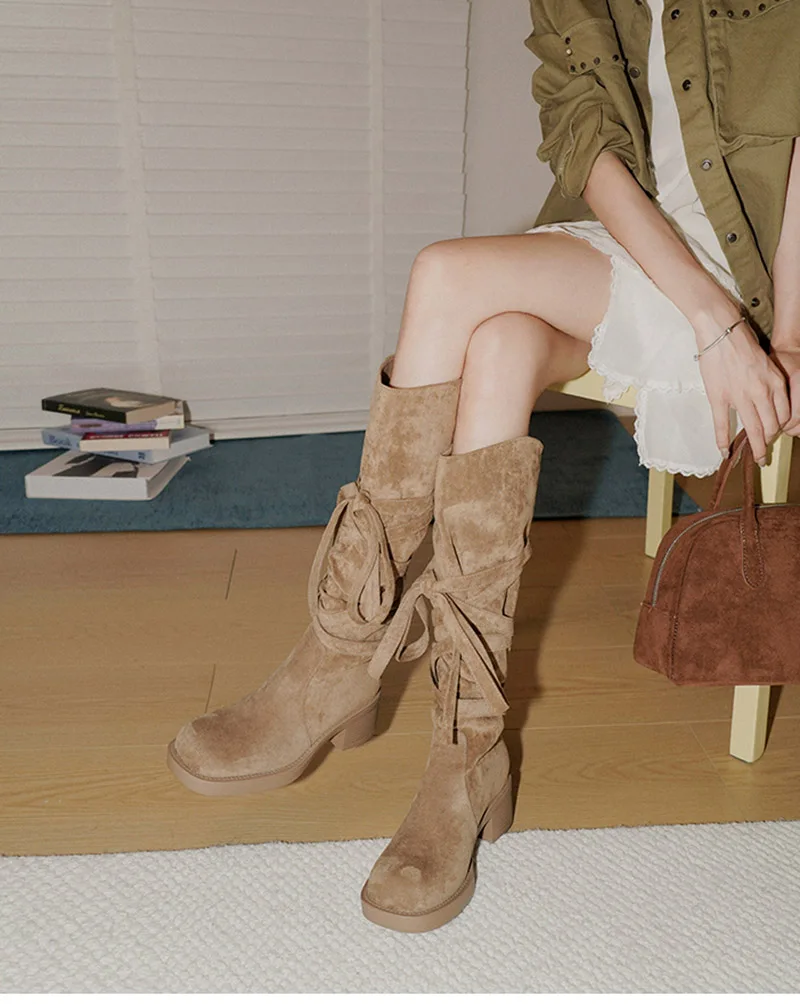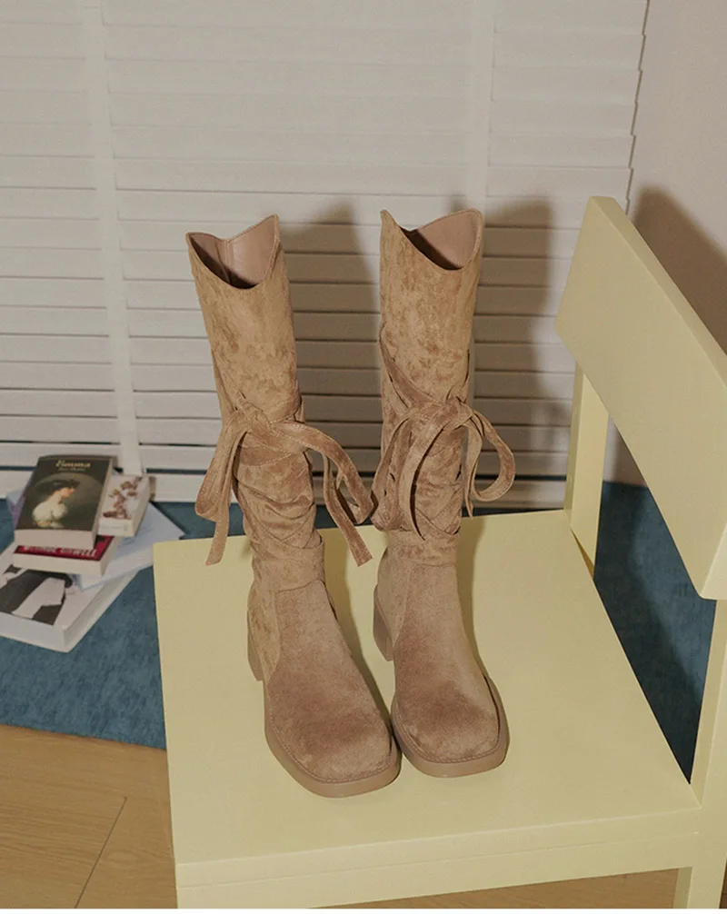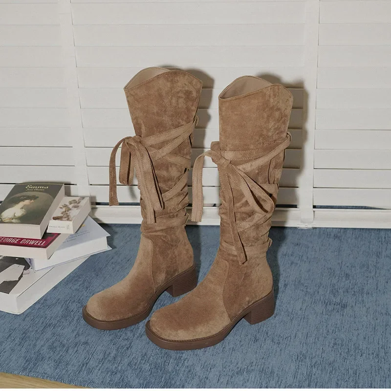 2025 nuevas Botas De vaquero del oeste con borlas Vintage para Mujer, Botas largas informales De tacón grueso para Mujer, Zapatos De Mujer