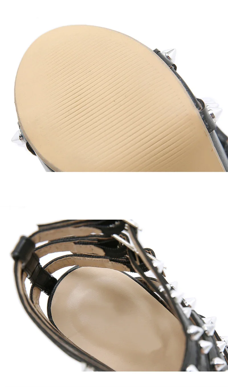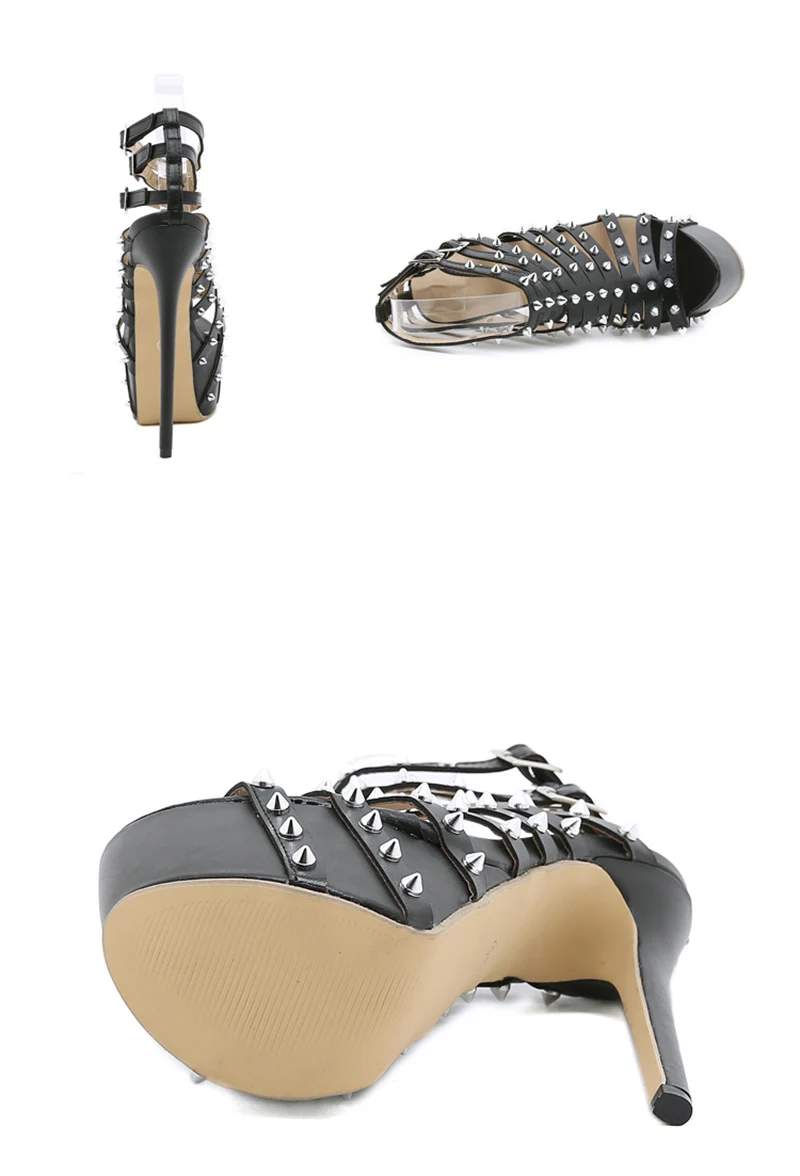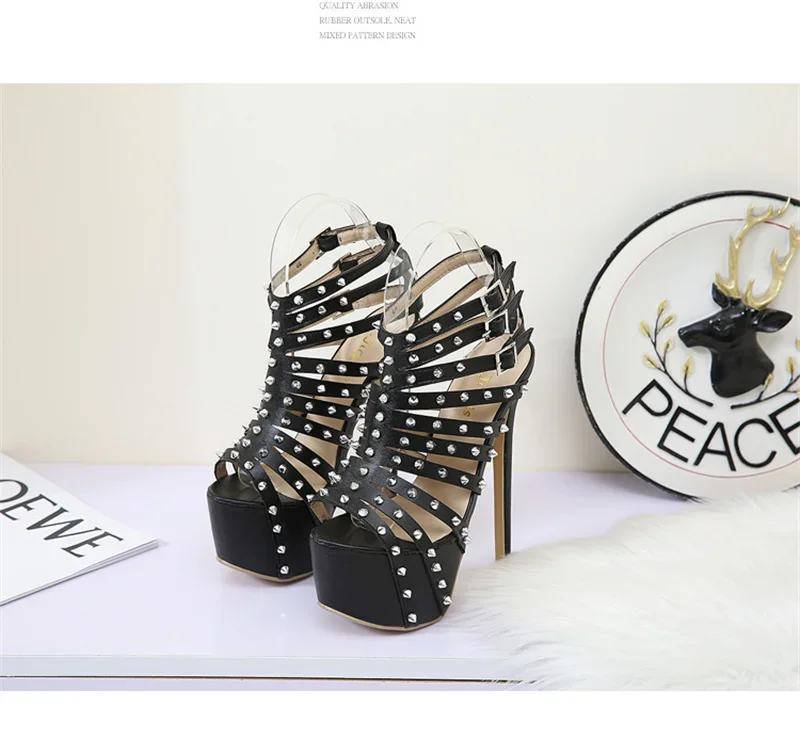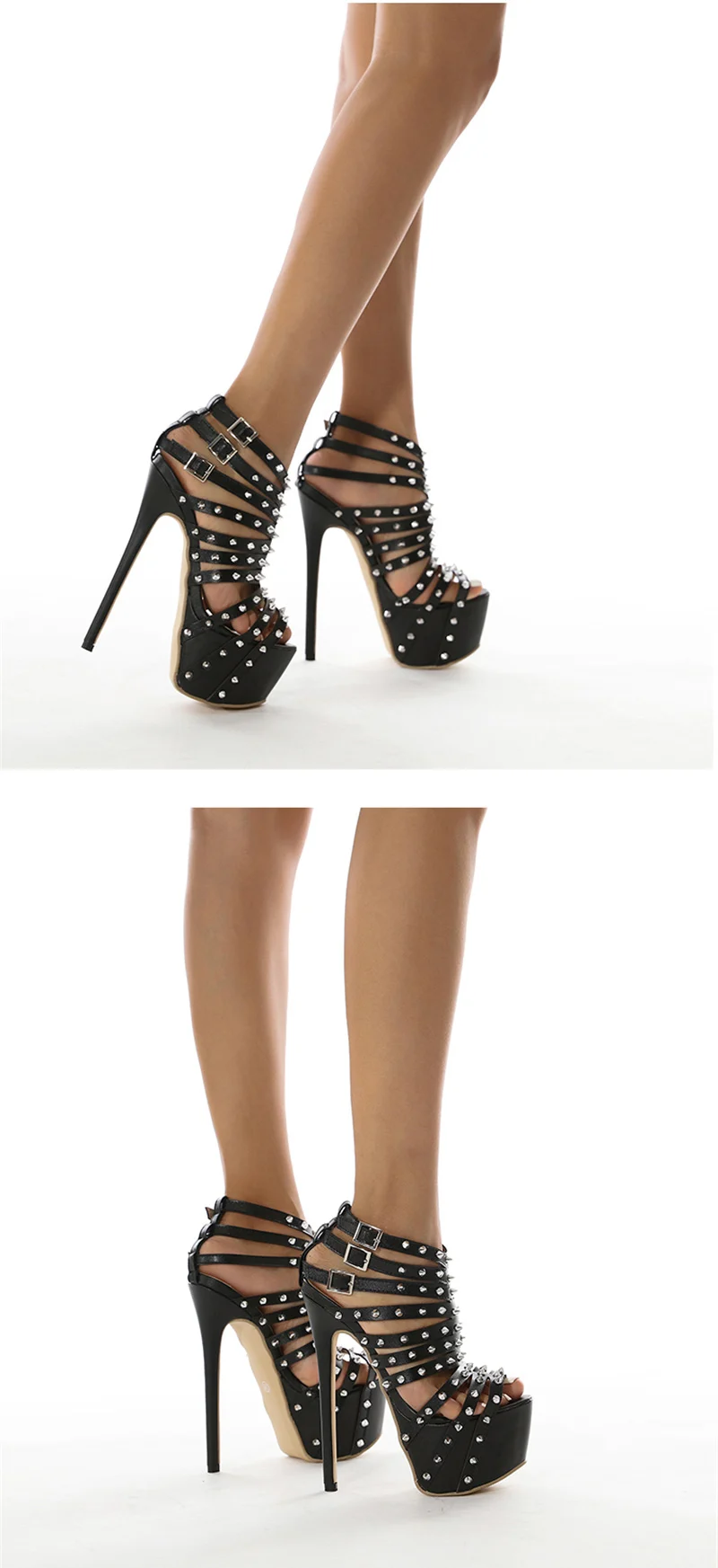 2025 nuevas sandalias de tacón alto con plataforma de verano para mujer, zapatos de tacón sexis con punta abierta, decoración de remaches a la moda, zapatos de baile de barra para fiesta para mujer