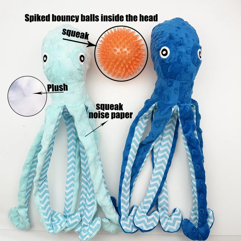 Este divertido juguete de pulpo mantendrá a tu perro entretenido durante horas.Es ideal para juegos interactivos tanto en exteriores como en interiores.Los sonidos crujientes excitan la persecución natural de tu perro y los instintos de caza.Satisfaga las necesidades de ejercicio y resolución de rompecabezas de su perro con este divertido juguete.Ayuda a reducir la ansiedad y el aburrimiento mientras fomenta el juego interactivo entre usted y su querida mascota.