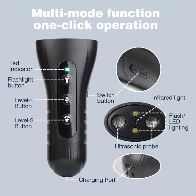 2025 NUEVO Repelente de Perros Dispositivo de Entrenamiento de Perros ultrasónico Dispositivo disuasorio de Corteza de Perro Recargable con Accesorios LED para Perros
