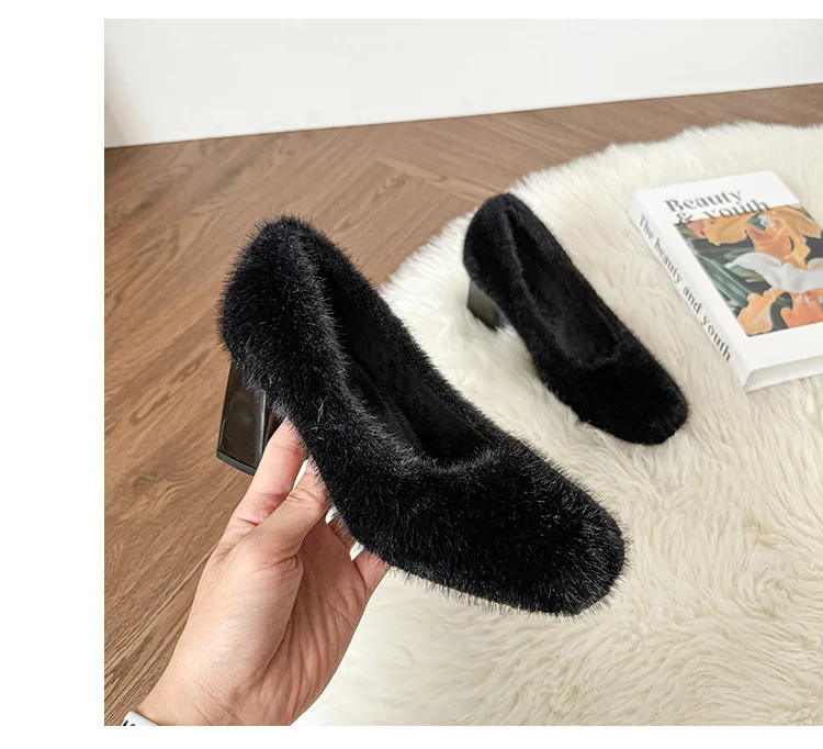 2025 Tacones Boca baja Zapato de mujer africana Zapatos de tacón con punta cuadrada Mary Jane Slip on Lo último con cordones Borgoña Sweet Lolita