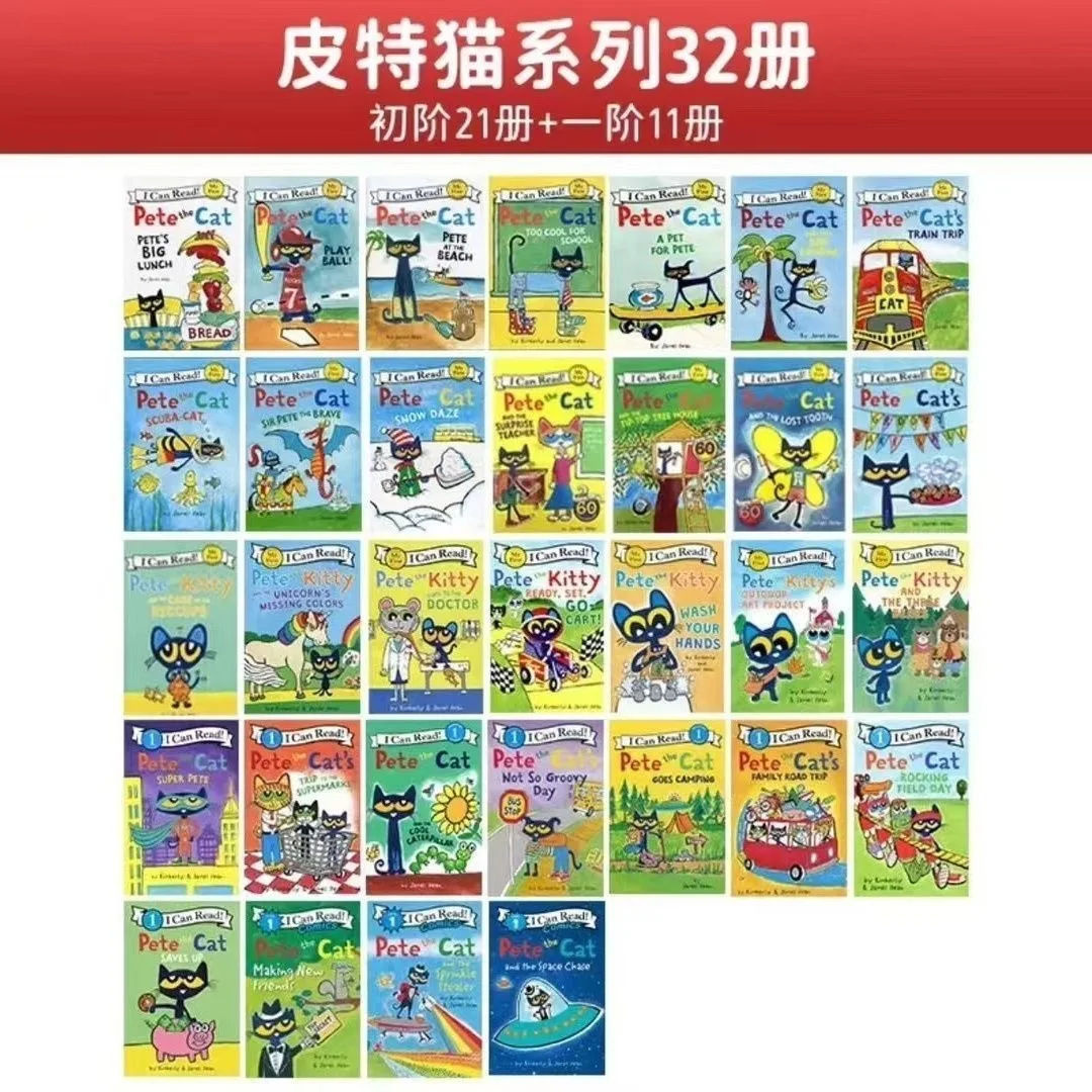 2025 lo último en puedo leer Pete, libros ilustrados de gato, cuentos famosos para niños, libro infantil de cuentos en inglés, 32 libros/juego de libros para dormir