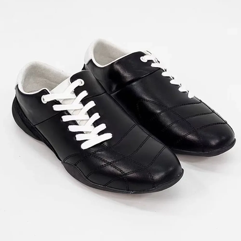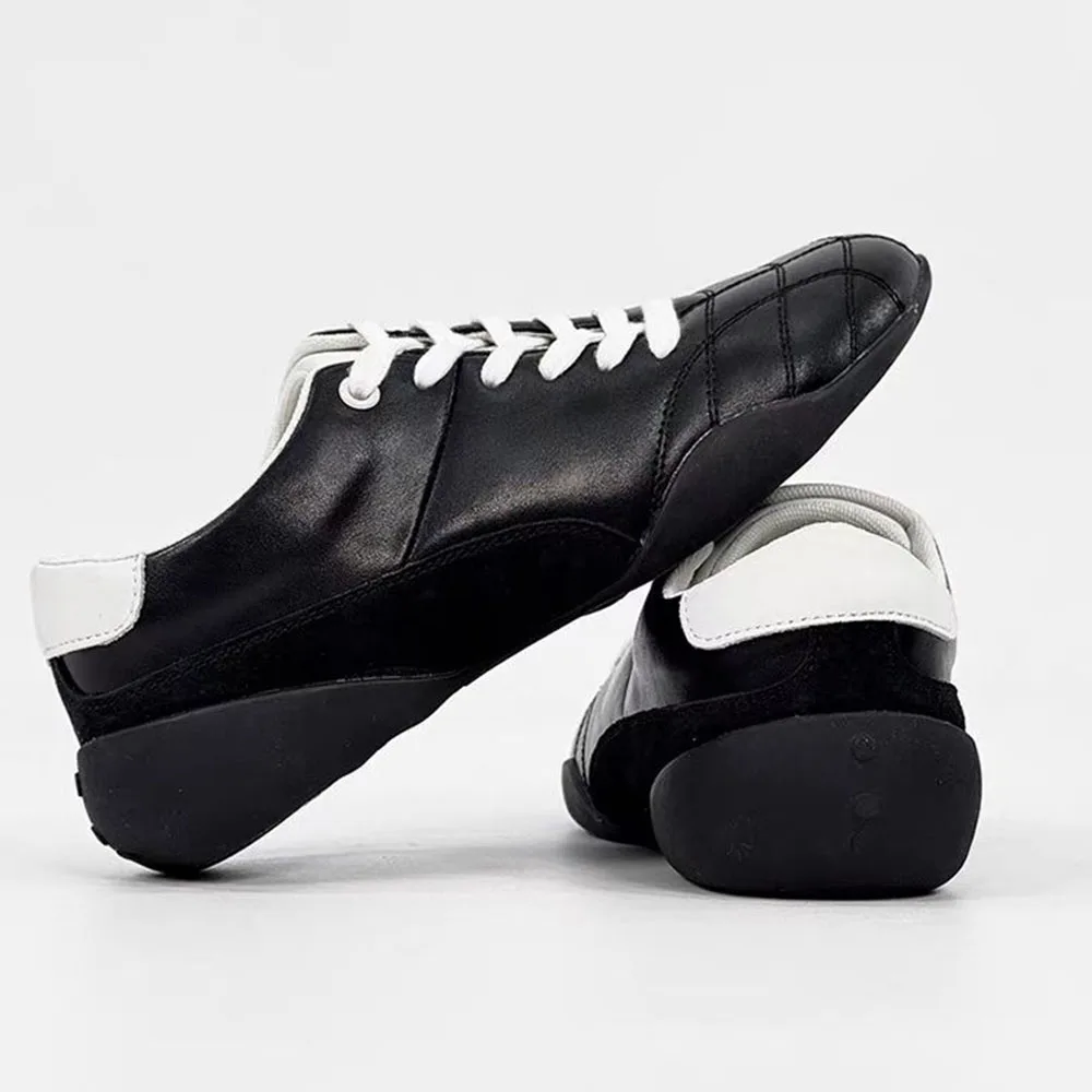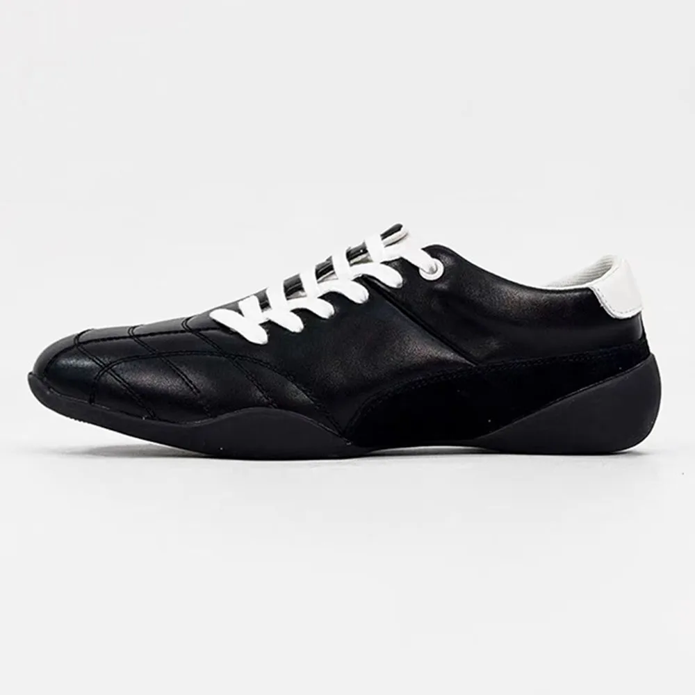 2025 Zapatillas de deporte informales negras estilo fútbol para mujer, zapatos planos con cordones elegantes, zapatos cómodos para caminar, zapatillas deportivas para mujer de alta calidad