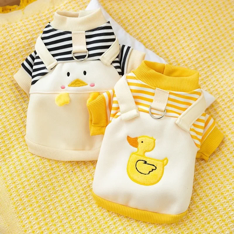 24 años de edad nuevo lindo Otoño e Invierno rayas dibujos animados cachorro perro suéter dos pies fino terciopelo gato ropa para mascotas
