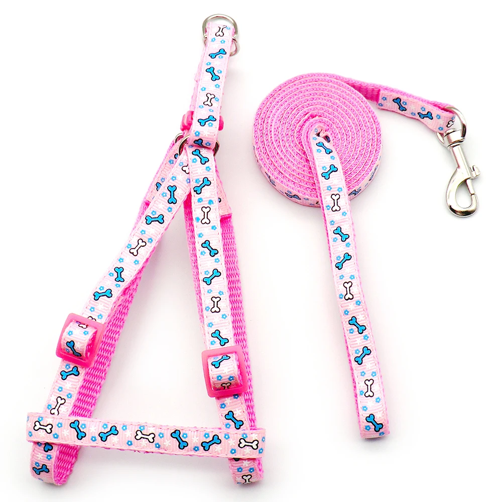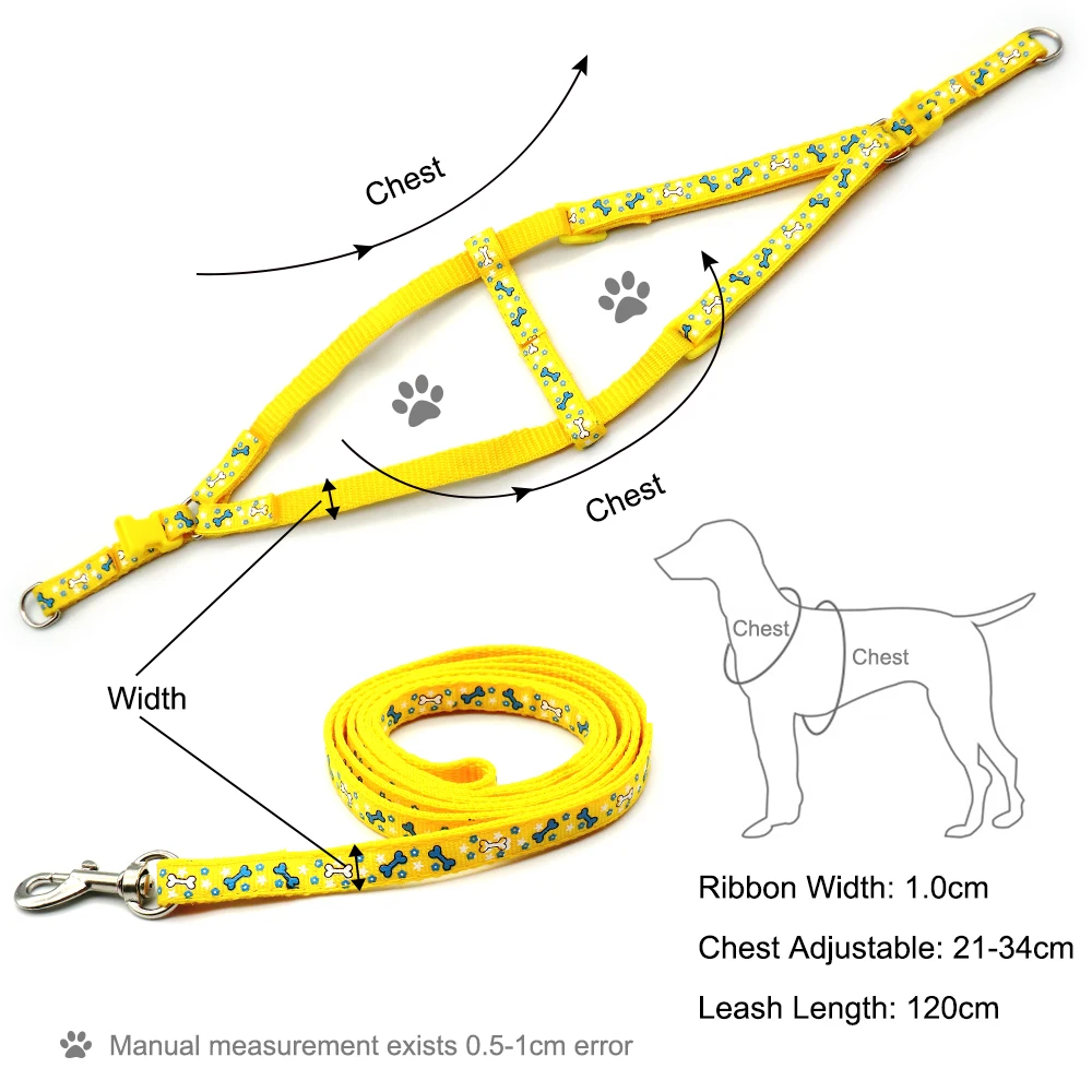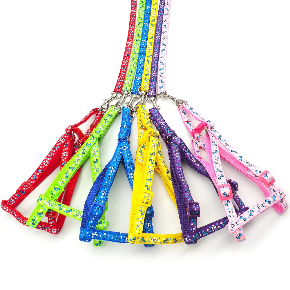 24 Uds. Arnés de perro bonito de dibujos animados de hueso, chaleco ajustable, suave y transpirable, arnés para cachorros, Collar, correa de pecho para perros y gatos, correa antipérdida