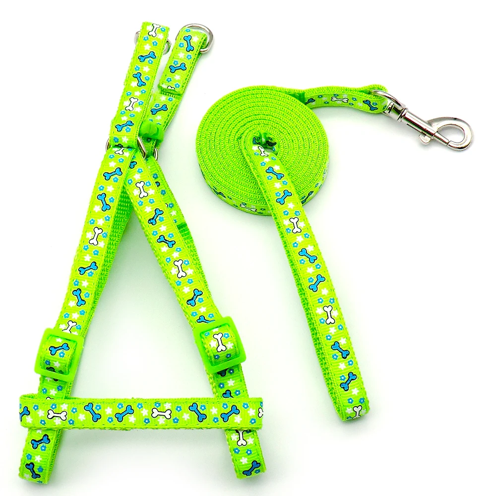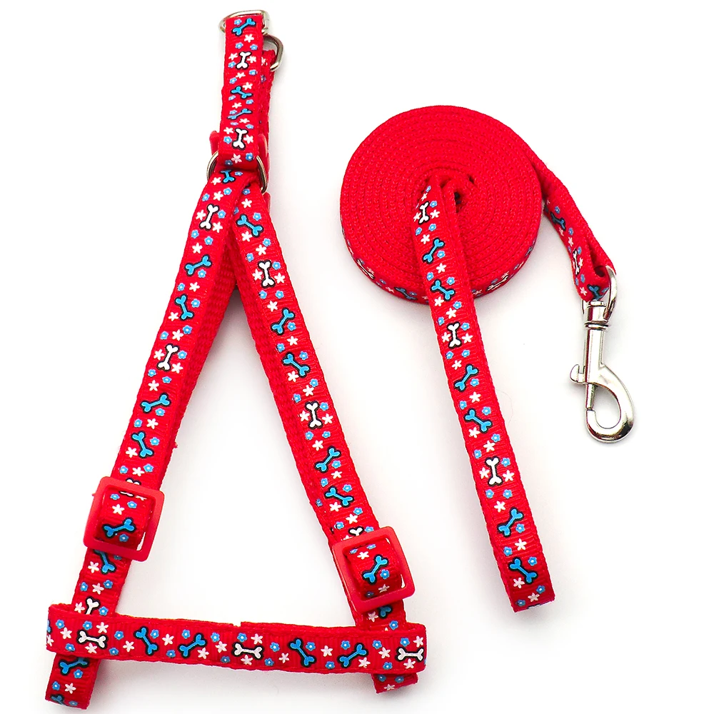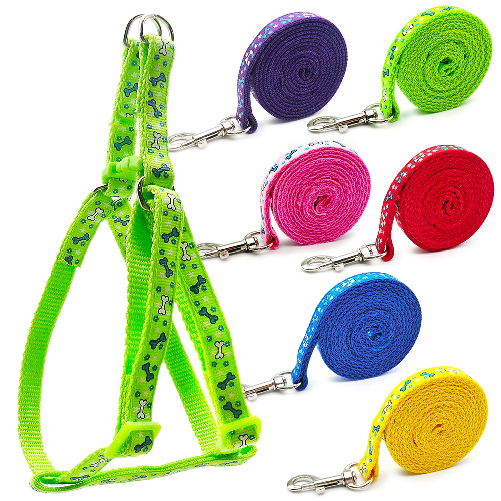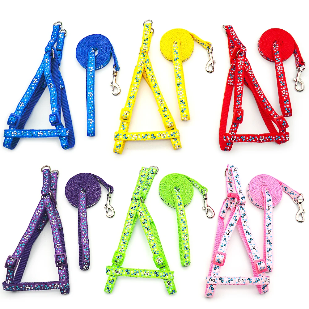 24 Uds. Arnés de perro bonito de dibujos animados de hueso, chaleco ajustable, suave y transpirable, arnés para cachorros, Collar, correa de pecho para perros y gatos, correa antipérdida