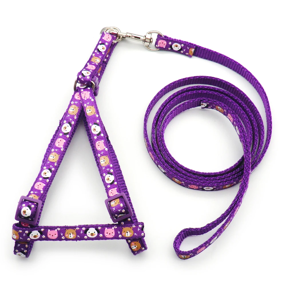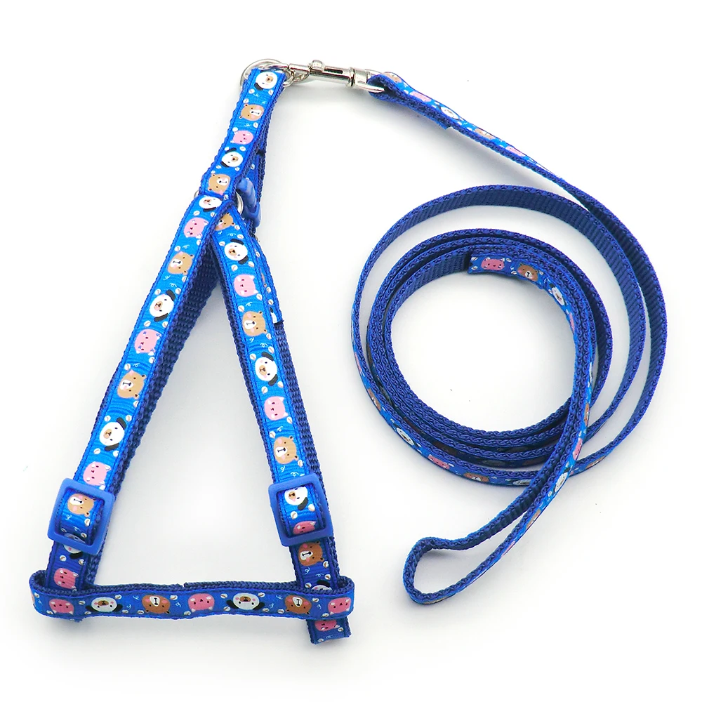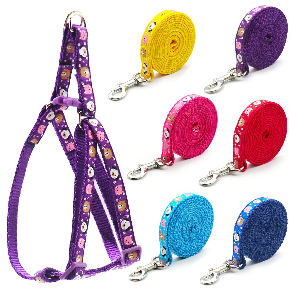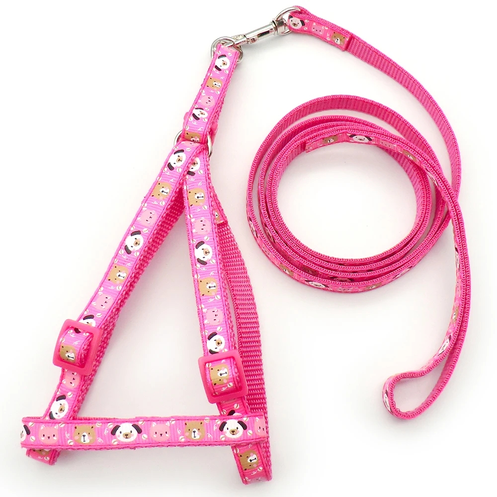 24 Uds cadena de poliéster ajustable juguete correa de plomo interactiva collares para perros suministros para mascotas arnés impreso pecho espalda cuerda de tracción