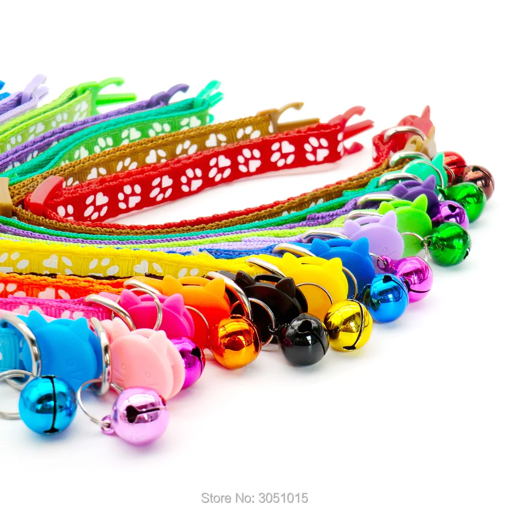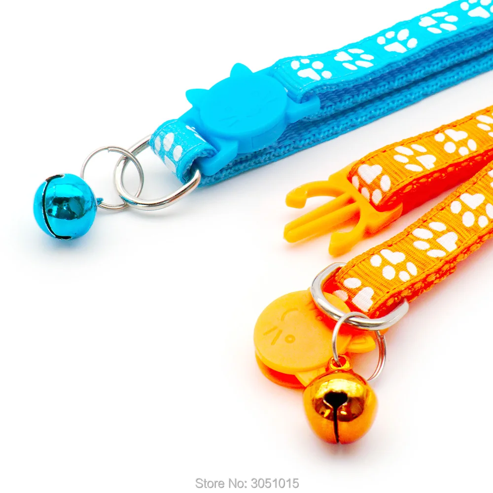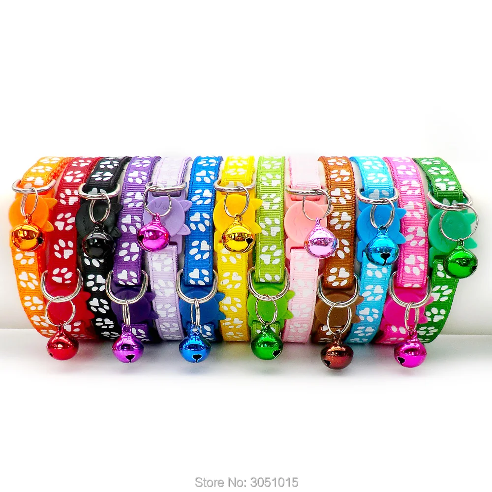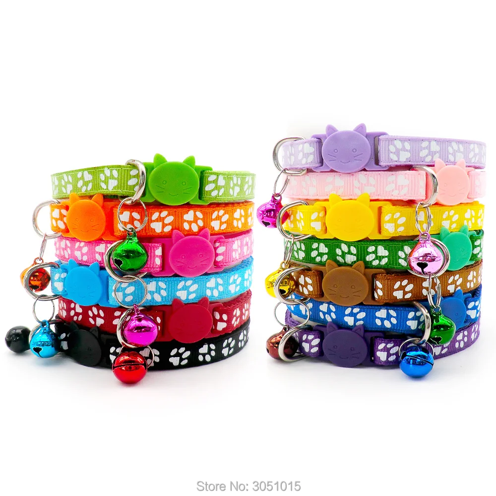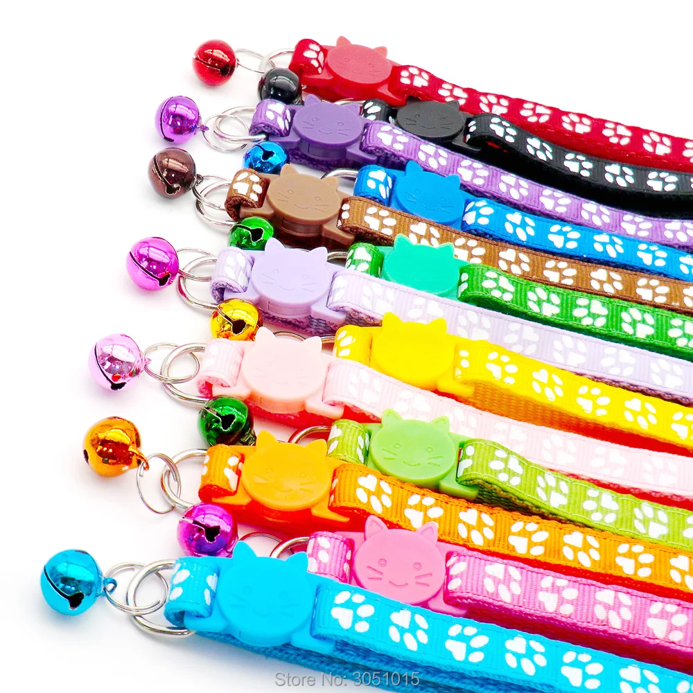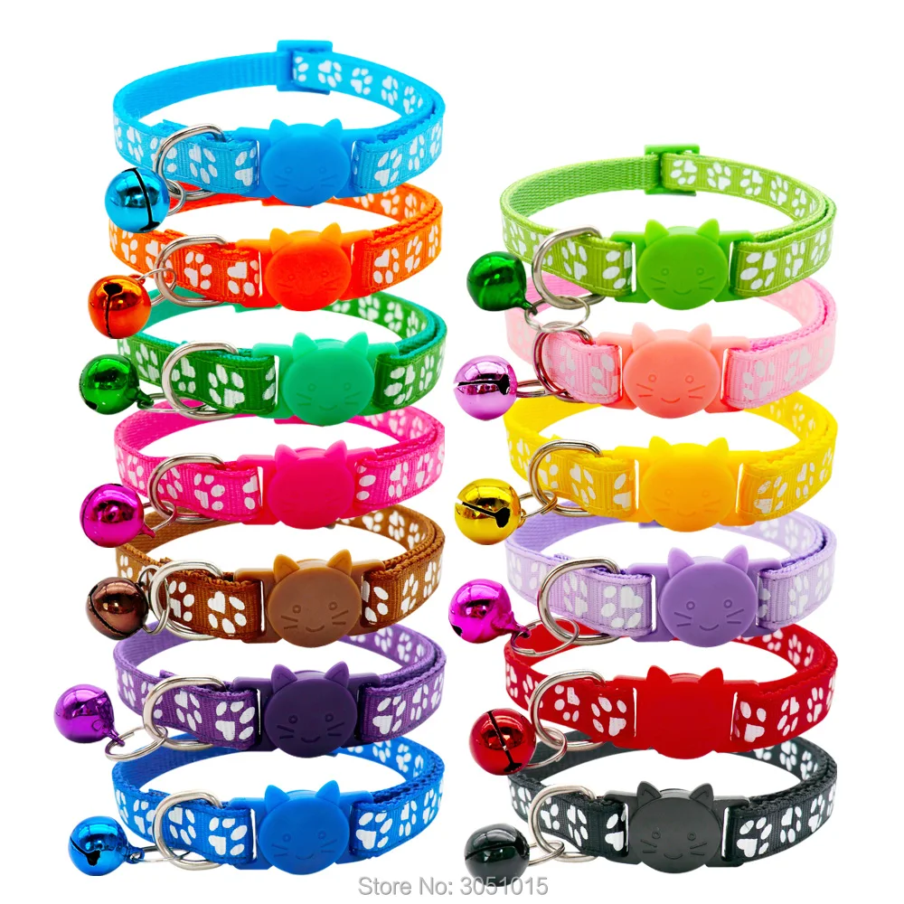 Collar de pata de perro, 24 Uds., bonitos accesorios para mascotas pequeñas, collares para gatitos al por mayor con hebilla diseñada para gatos de seguridad, campanas coloridas