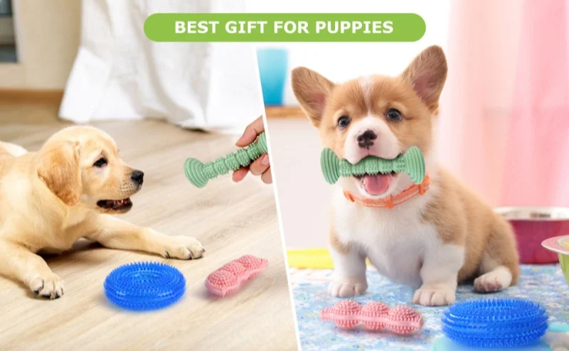 3/6 Uds. Juguete para mascotas resistente a las mordeduras, cepillo de dientes, hueso, juguete para perros resistente, juego interactivo para cachorros, juguete de goma para masticar para cachorros