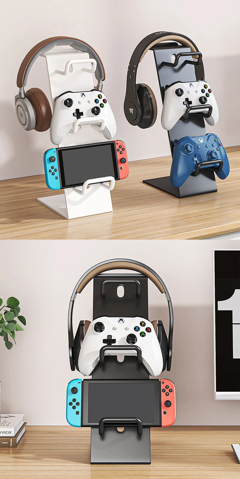 3-Layer Universal Gaming Gear Storage Stand • Multi-Functional Controller & Headphone Organizer Rack
