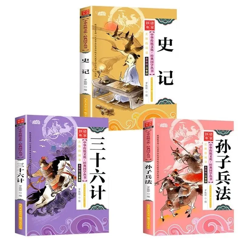 3 libros/juego más nuevo, clásicos de cultura tradicional china, registros históricos, historias, nieto, trenta y seis estrategias, libros