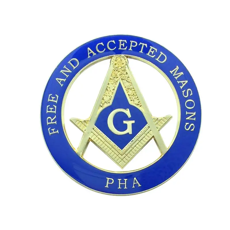 Nombre del producto: 3 pulgadas PHA chapado en oro Regalos Masón Emblemas para automóviles mágicos con adhesivo rojo